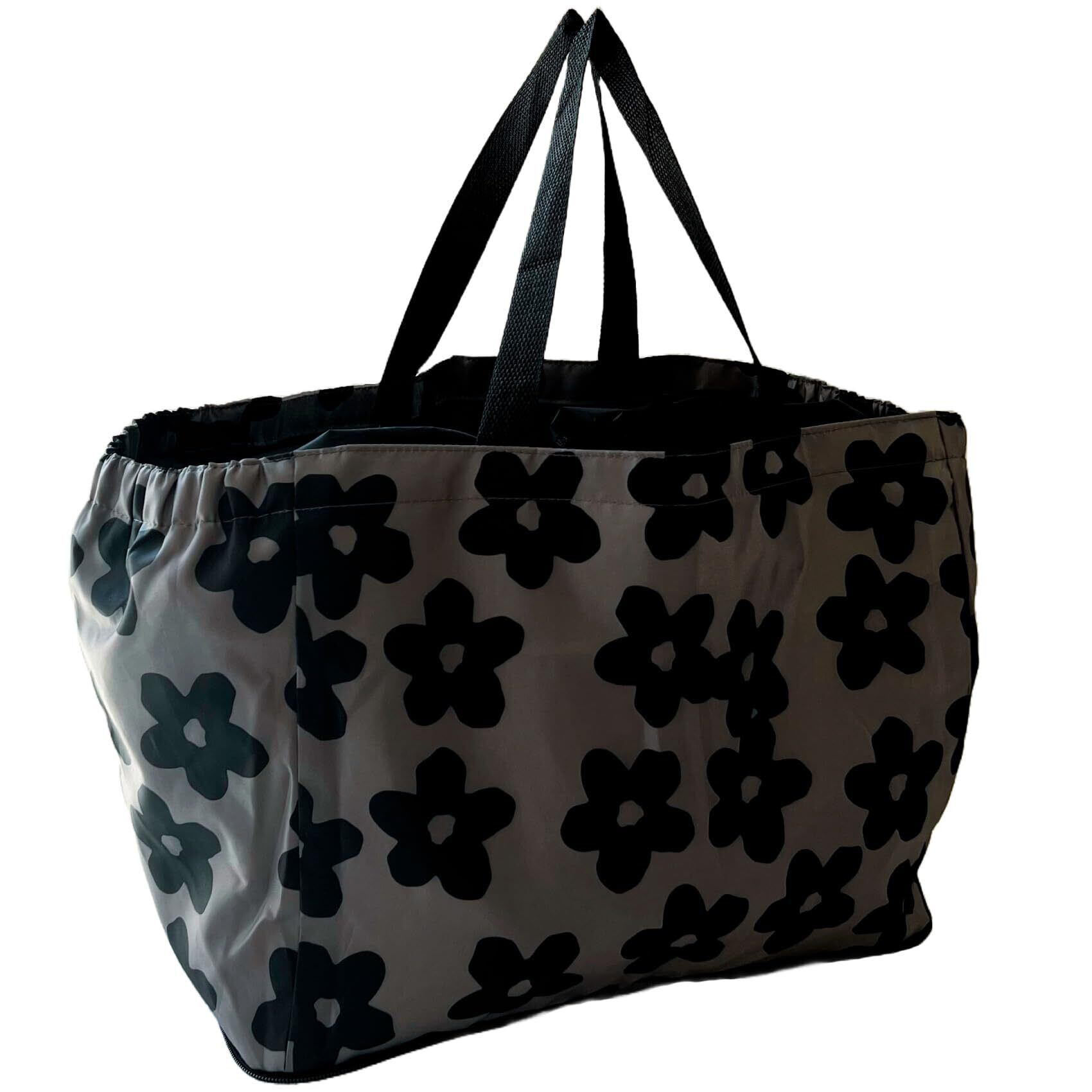 「このエコバッグは大容量で、約40リットルの収納力を誇ります。レジカゴにぴったりフィットするサイズ感で、買い物の際に必要な食材や日用品を楽々運べます。」