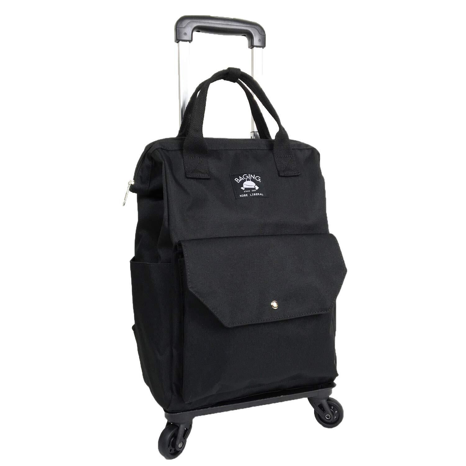[神戸リベラル] ショッピングキャリー リュック カート キャリーバッグ 横押し 機内持ち込み 完成品 903 (ブラック&ブラック)