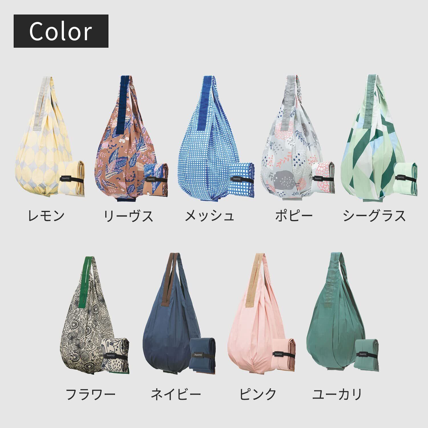【いつもバッグに入れておけるコンパクトサイズ】レジ袋と同じような感覚で、荷物をスムーズに収納できます。底マチフリー構造のため、底面が広いケーキの箱も入れられます。使っているときも置いたときも自然と袋口がすぼまり、中身が見えにくい「しずく形状」です。ショッピングバッグ、買い物バッグはもちろん、旅行のサブバッグなどにも。コンパクトで複数持ち歩いてもスペースを取らない「いつも一緒」を目指したマイバッグです。