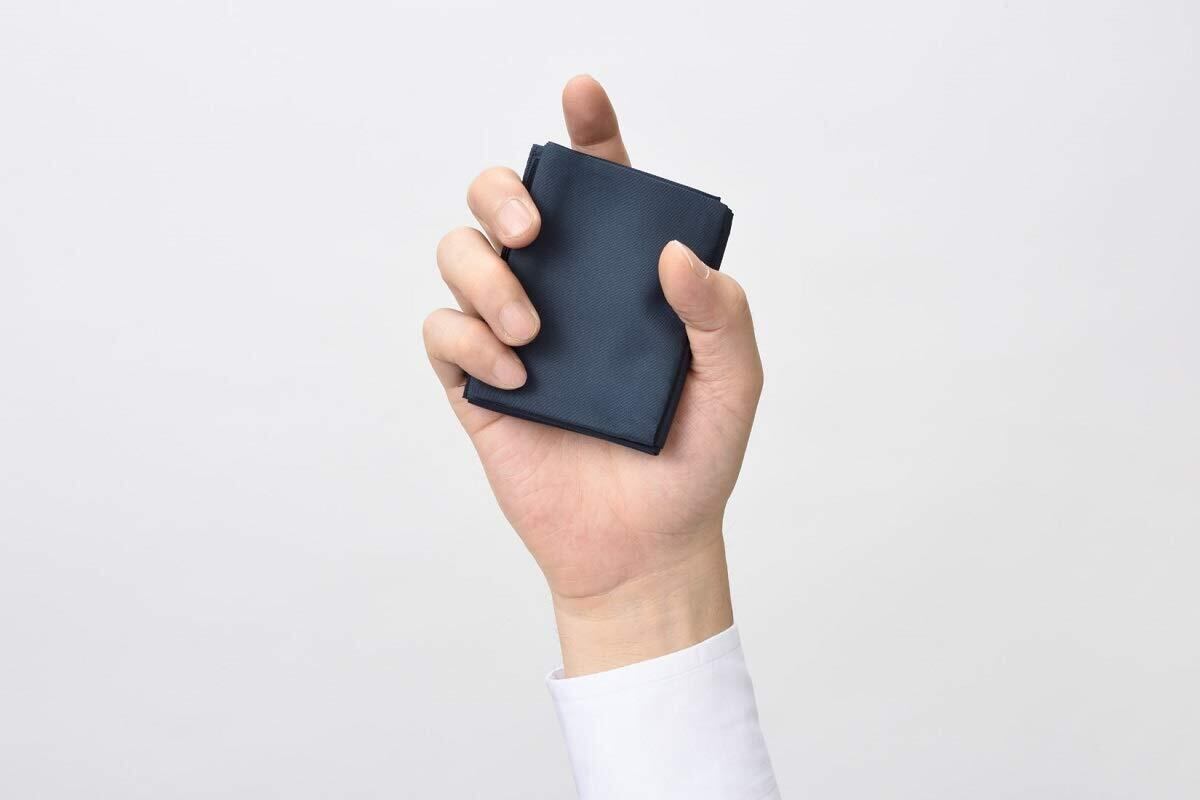 ・2019年度グッドデザインアワード受賞<br>・ポケットチーフ感覚で使えるスリムエコバッグです。<br>・15面のプリーツ折り加工でスムーズに折り畳みができます。<br>・折りたたむとスリムになるので持ち運びに便利で、ハンカチ感覚でポケットからサっと取り出すことができます。<br>・コンビニのお弁当やペットボトルがすっぽり入る容量設計になっているので、コンビニ袋の代わりに使えるエコバッグです。<br>・サイズ:約W255×H350×D140(mm)<br>・容量:約7L