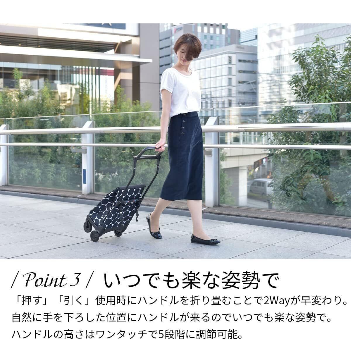 GRANMARIE[グランマリー] ショッピングカート ブレーキ付き 4輪 横押し 後ろ引き 2way 保冷 保温 買い物 保冷バッグ GM-124STDOTBK ドットブラック