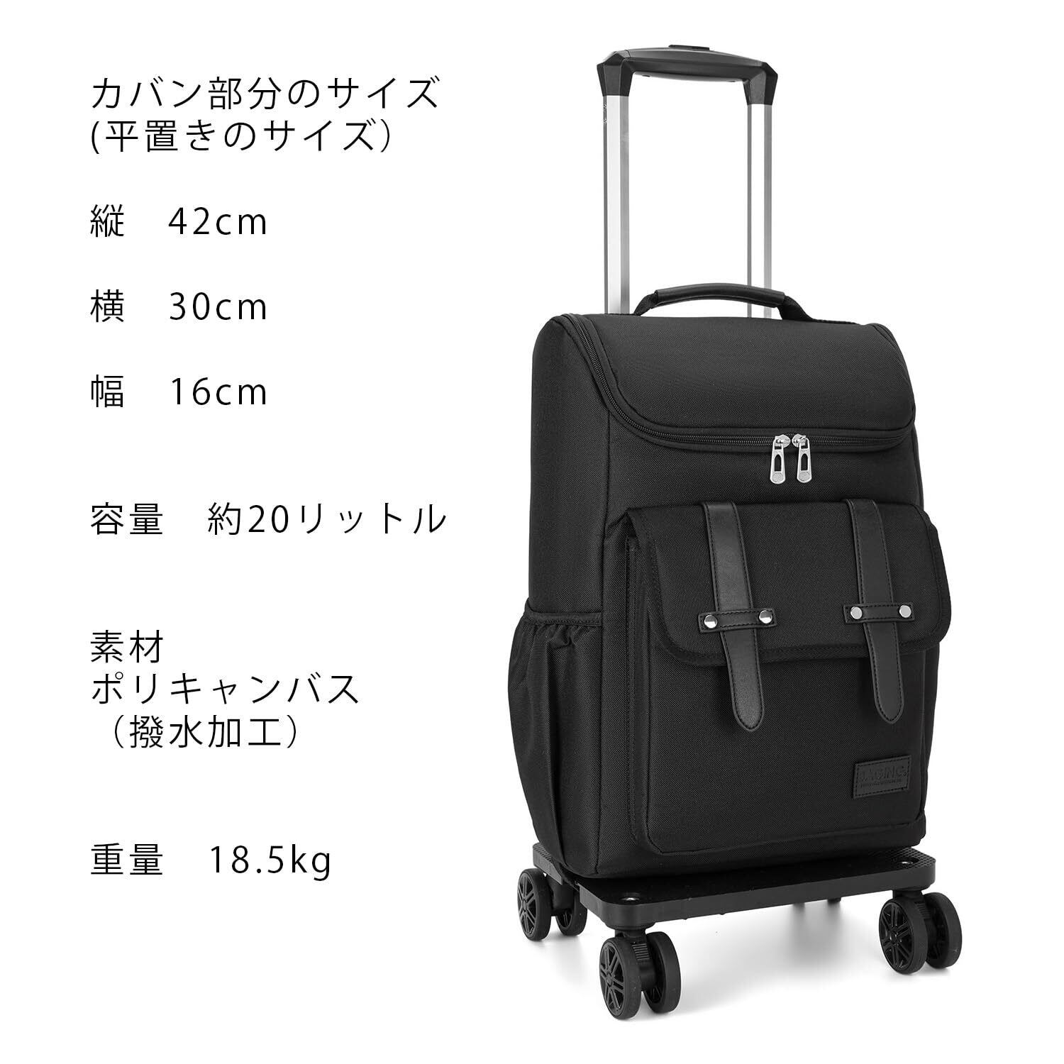 防水加工、撥水加工を施したショッピングキャリー。4輪ダブルキャスタータイプで安定感抜群です。機内持ち込みも可能サイズ A4サイズはもちろん、15インチノートパソコンも収納可能。