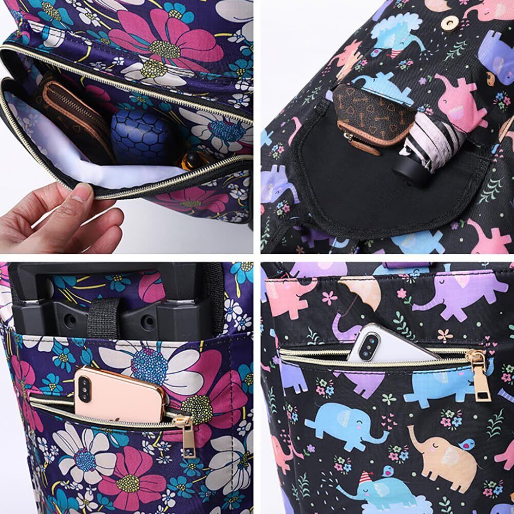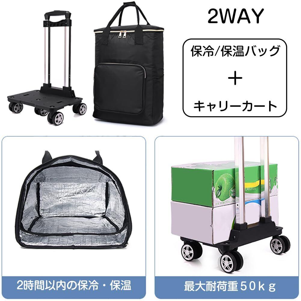「このショッピングカートは、防水加工が施された超耐久性のオックスフォード布で作られており、雨や雪から中身を守ります。また、保冷・保温機能付きなので、冷蔵食品や飲料の鮮度を長持ちさせることができます。これにより、買い物後も安心して持ち運ぶことができます!」