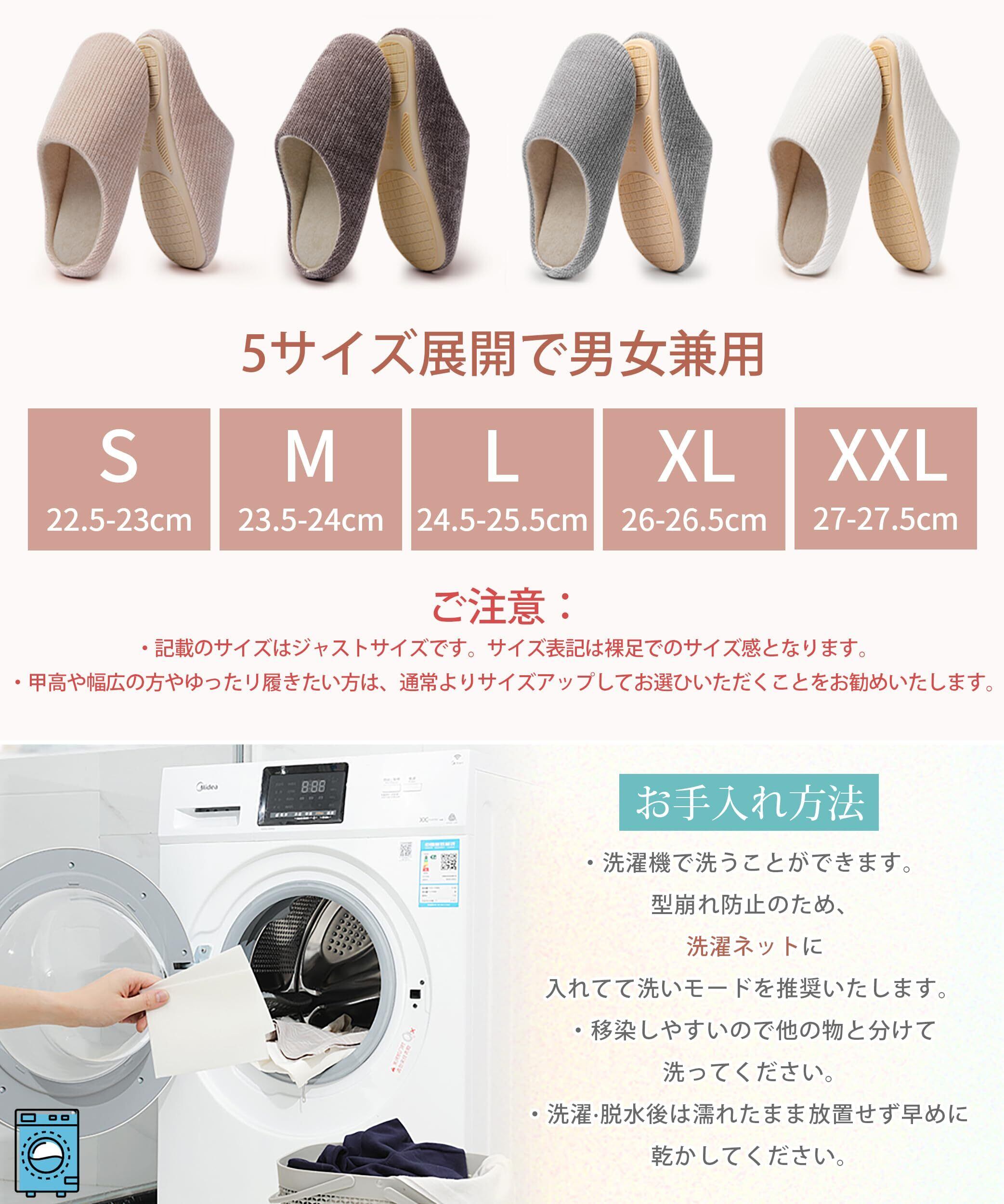 「このスリッパは丸洗いが可能なので、いつでも清潔に保てます。手洗い推奨ですが、気軽にお手入れできるのが嬉しいポイントです!」