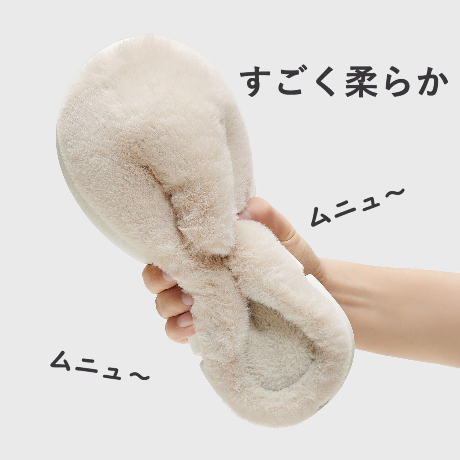 「このスリッパは、ふわふわのボア素材を使用しており、履くと瞬時にその暖かさに包まれます。寒い季節も快適に過ごせるように設計されており、家でのリラックスタイムを更に心地よく演出してくれます!」