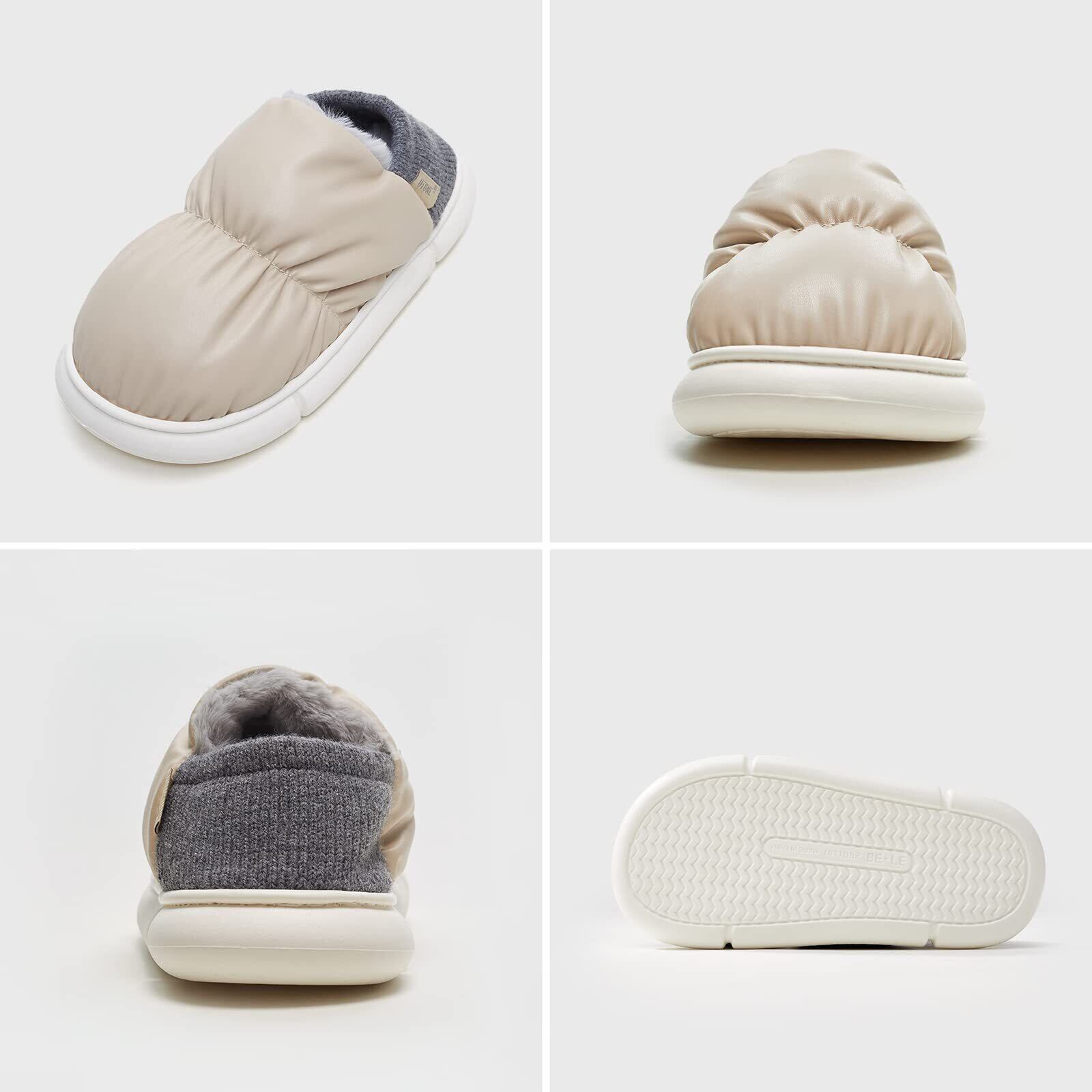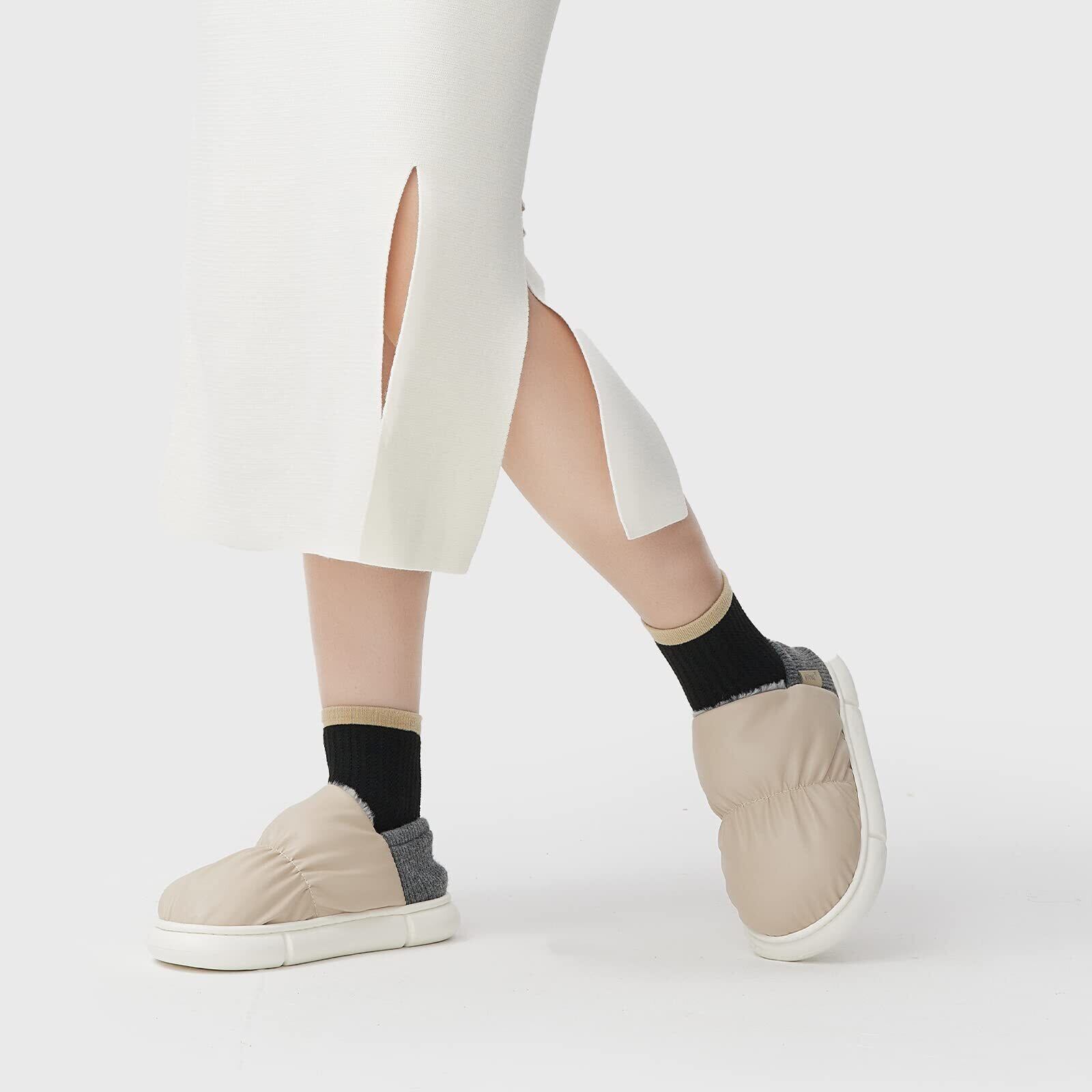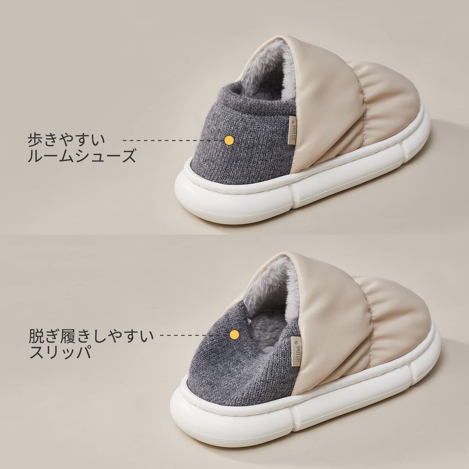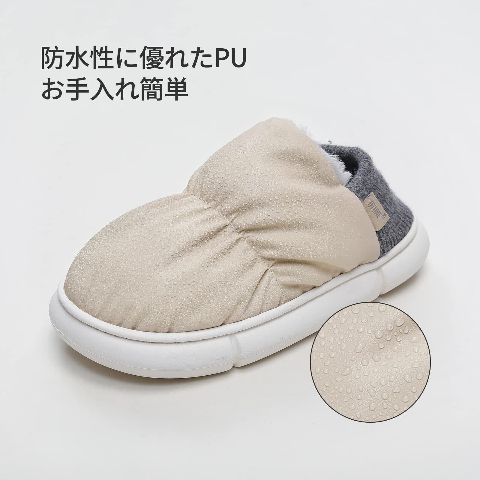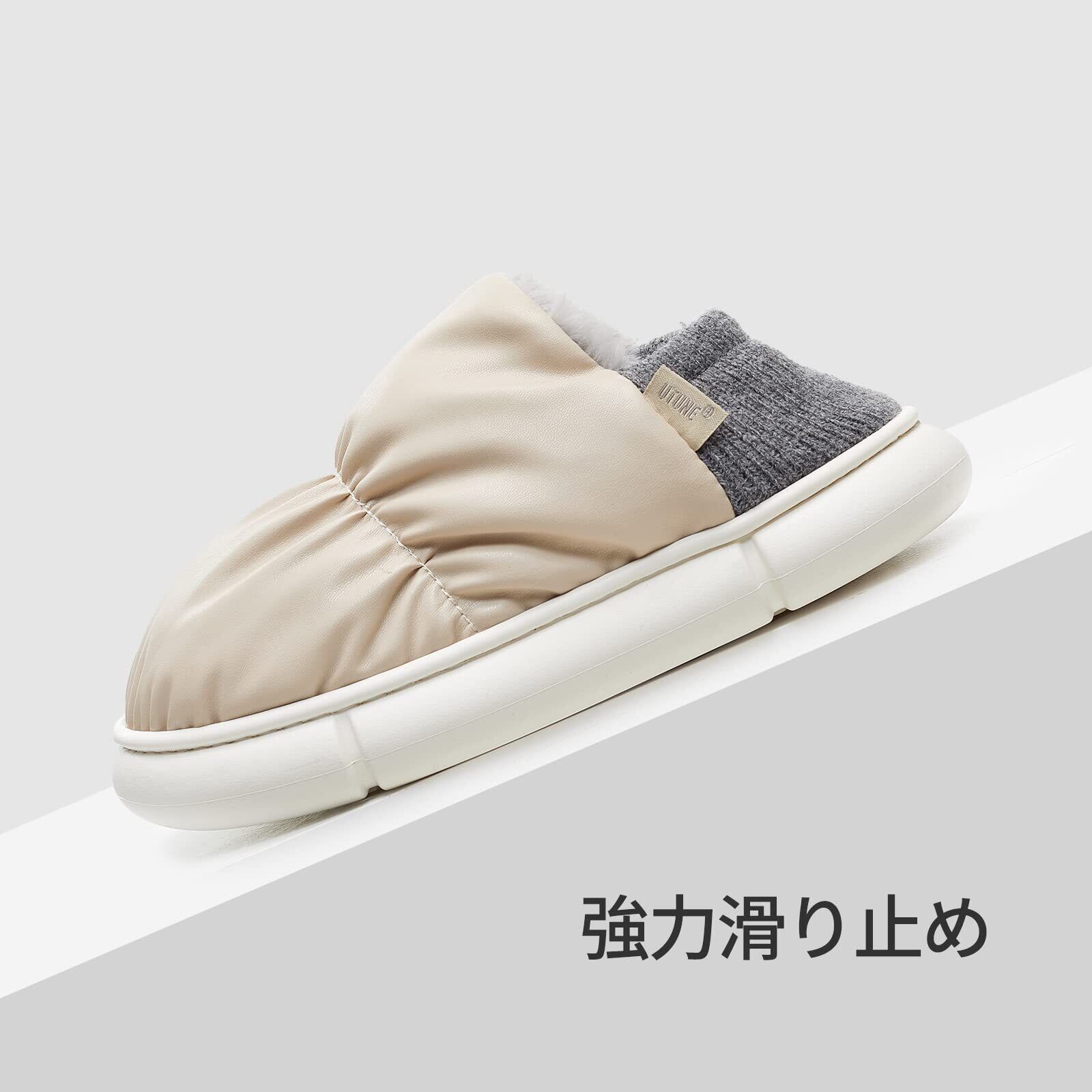【良質な素材】:甲は防水性に優れたPUで、中敷きはふわふわのフェイクファーを採用します。動物愛護と同時に快適な履き心地を実現していました。ソールはEVA素材で、滑り止め効果がいいです。
