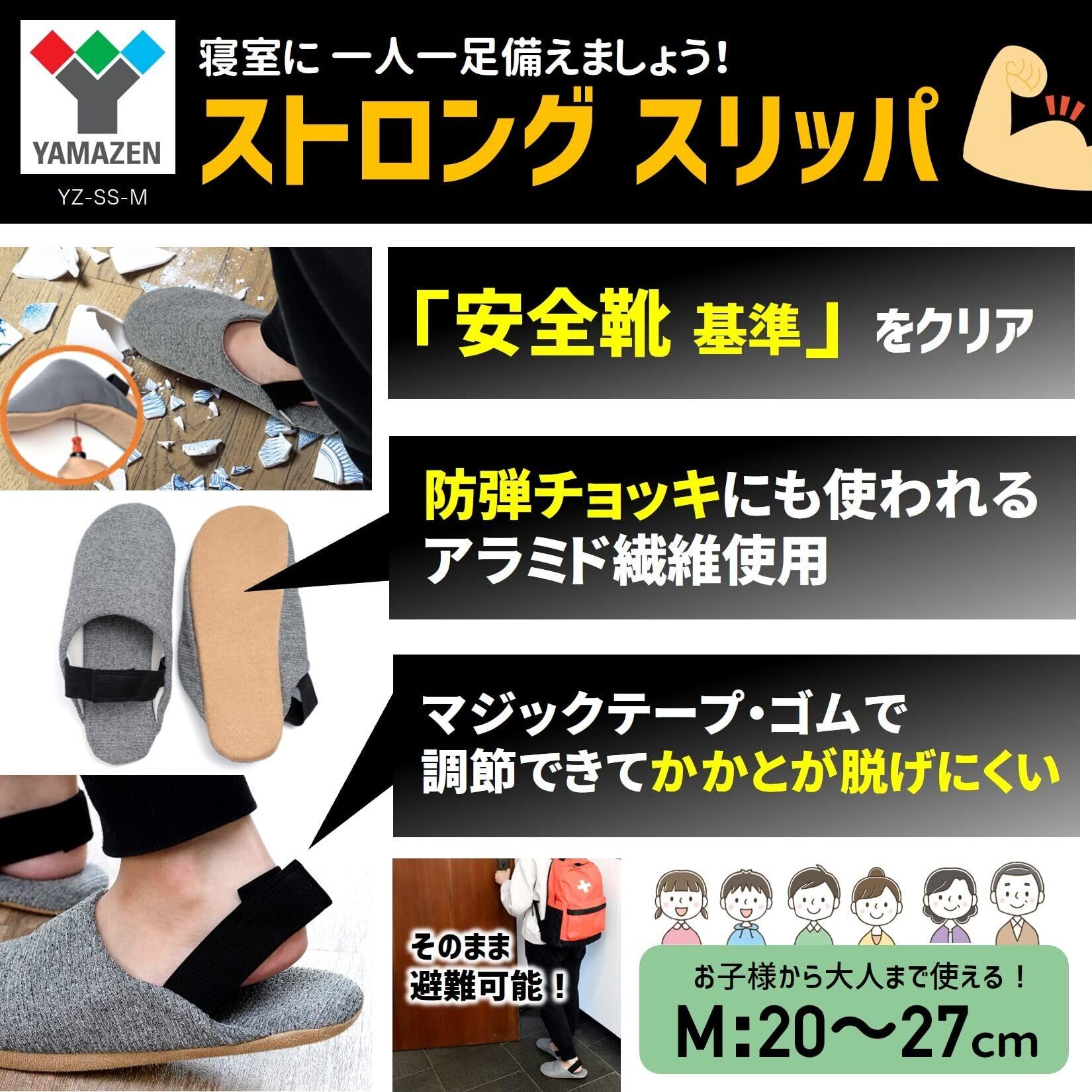 [山善] スリッパ 室内 ストロングスリッパ 防災 ルームシューズ 釘を通さない 防災士監修 防災グッズ 地震対策 避難 外履き 室内履き 脱げにくい(かかとゴム付き) YZ-SS