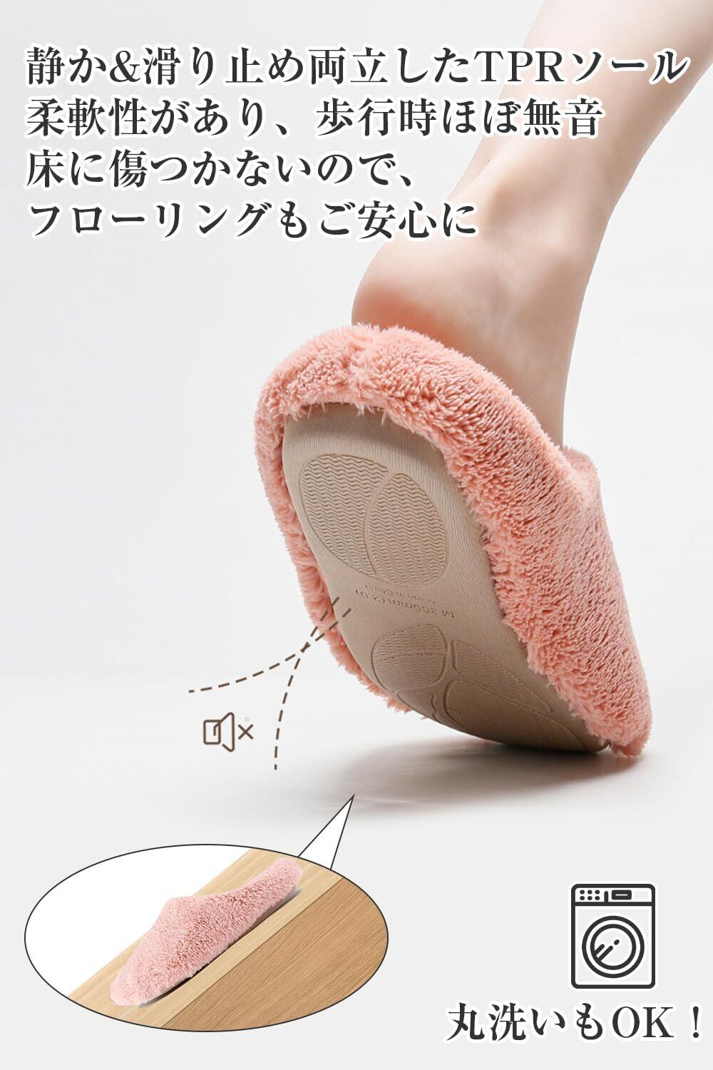 【驚くべき暖かさ!履き心地良い全体ふわもこ、上質なコーラルフリーの柔らかな手触り】見た目もかわいいふわふわのインソールは、足を包み込み、ふわふわとした内側が熱を逃がさないので、履いたままでより早く暖まり、より暖かく過ごせます。新たに改良されたポリエステル繊維、毛皮のようなソフトな肌触りと強い保温性を実現。とても快適で、ソフトな肌触りもこもこです!素足でも履きやすいスリッパです。履き心地良くて、防寒・保温性と暖かさを長持ちさせます。