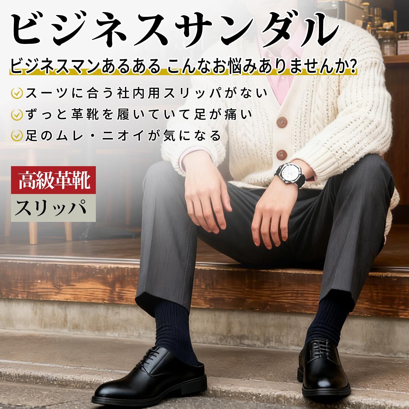 [NEARDREAM] ビジネスサンダル メン ズ スリッパ スリッポン 革靴 オフィスサンダル 通気性 蒸れない 幅広 室内 職場 事務所 会社