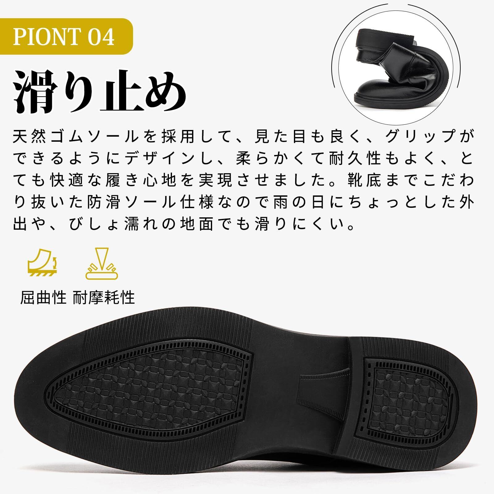 「洗練されたシンプルなデザインは、どんな服装にもマッチし、オフィスでのあなたのスタイルを格上げします。会議や来客時にも自信を持って履ける一足です!」
