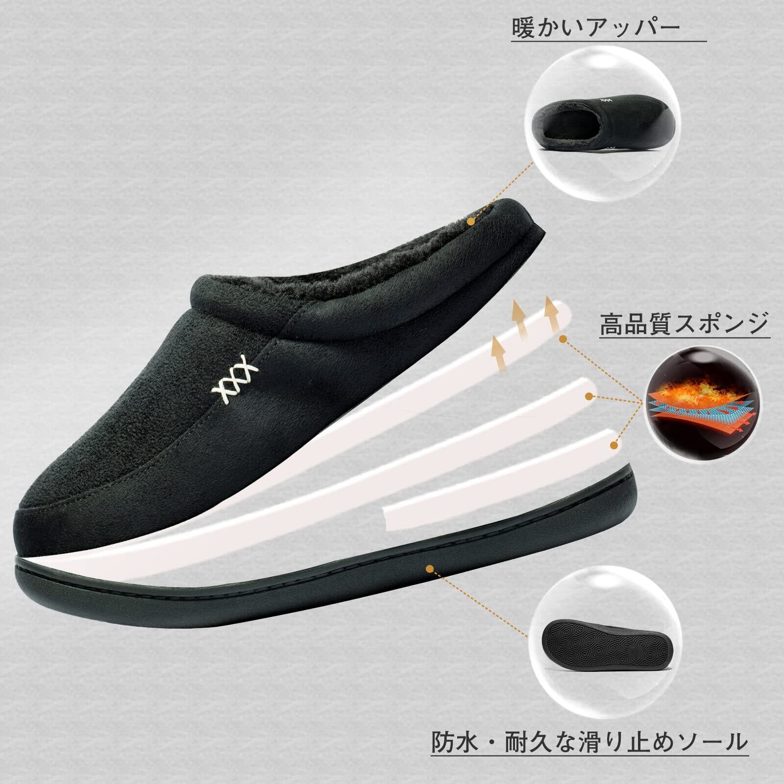 [Ranberone] ルームシューズ メンズ スリッパ 冬 暖かい 滑り止め 軽量 大きいサイズ ボア付き クロッグ 洗える フワフワ 防寒 消音タイプ 室内/室外履き