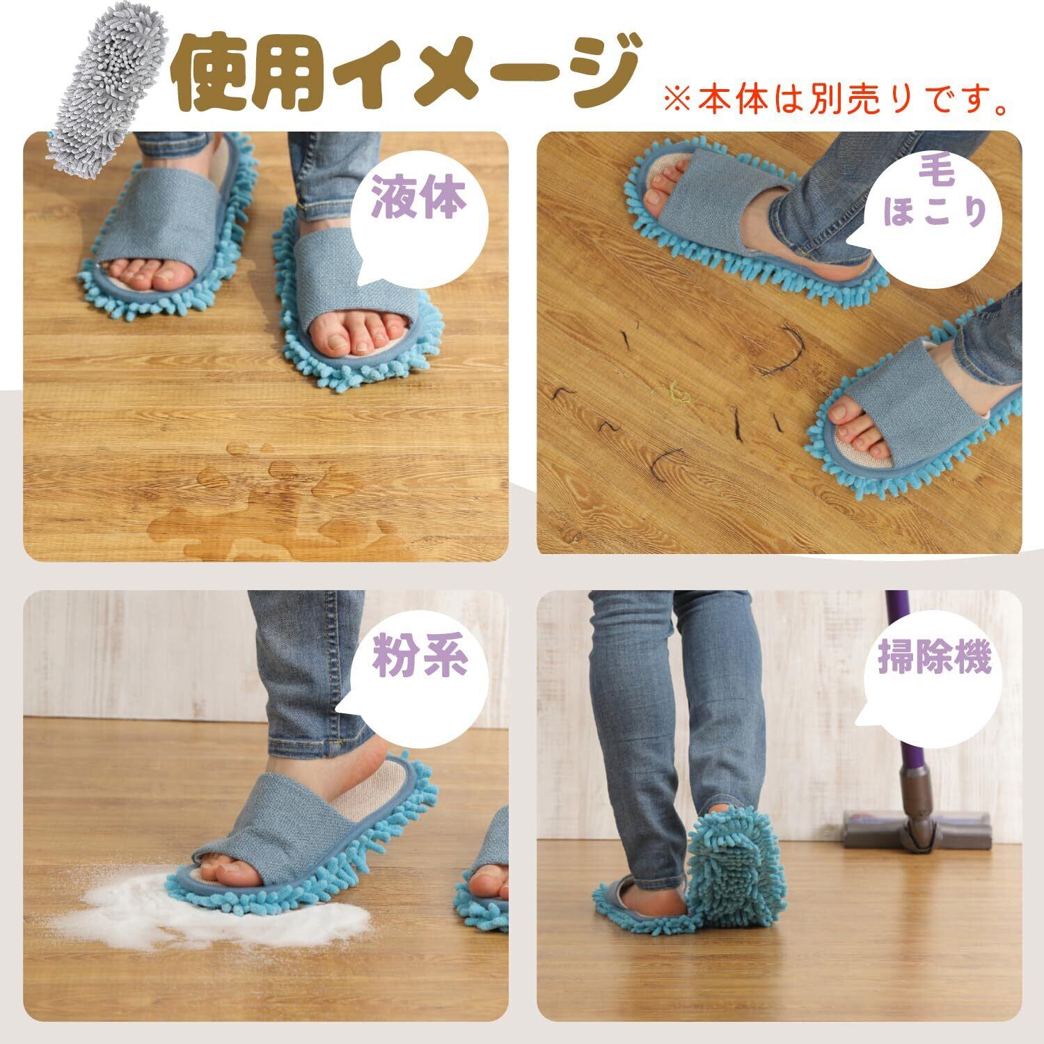 「特別に設計されたモップ部分は、微細なホコリや汚れを逃さずキャッチします。掃除機やモップを使う手間を減らし、さっと履くだけで効率的にお掃除ができるのが魅力です。まるで自分の足でお掃除!毎日の清掃が簡単に行えます。」