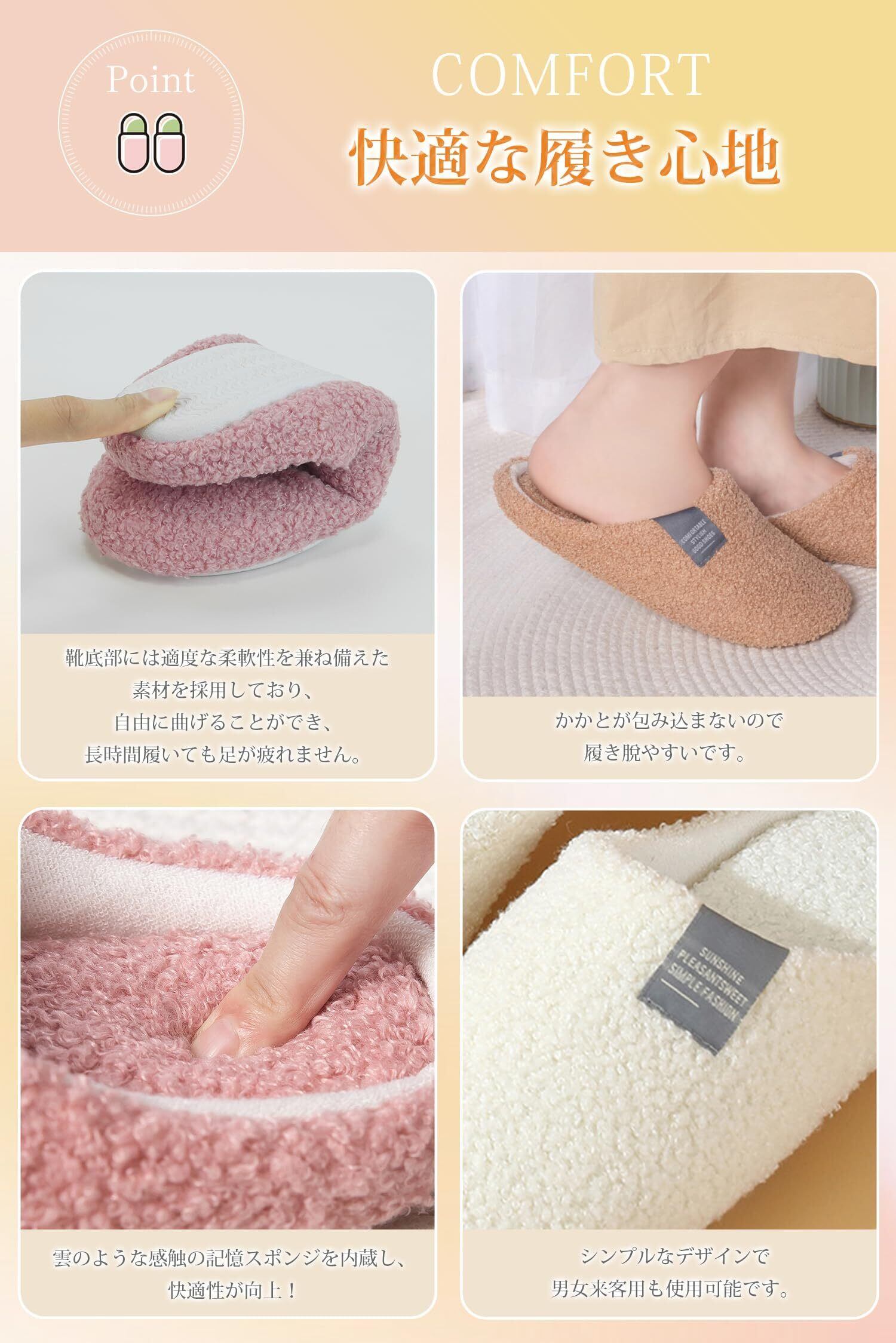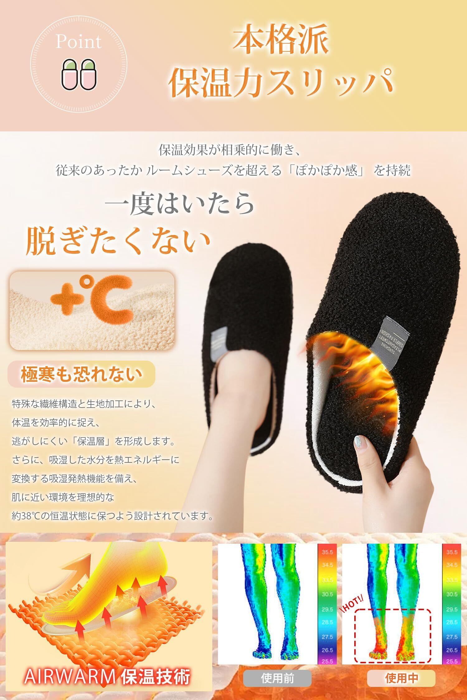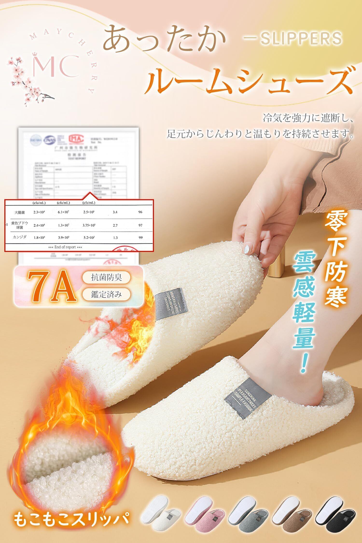 [MayCherry] あったか ルームシューズ スリッパ 冬用 7A抗菌防臭鑑定済み・雲感軽量・Airwarm防寒技術 もこもこスリッパ 室内スリッパ 防寒 室内履き 暖かい 超軽量 静音 洗える 滑り止め 22.5~25cm