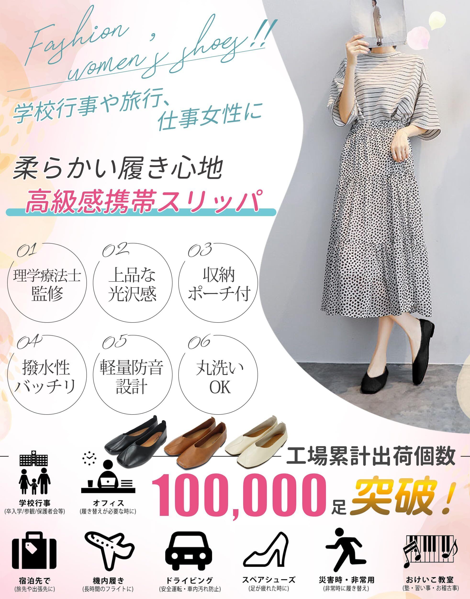 [Tophana] 【理学療法士監修】携帯スリッパ レディース 【柔らかい履き心地・上品な光沢感】 携帯シューズ フォーマルスリッパ 超軽量 収納バッグ付き