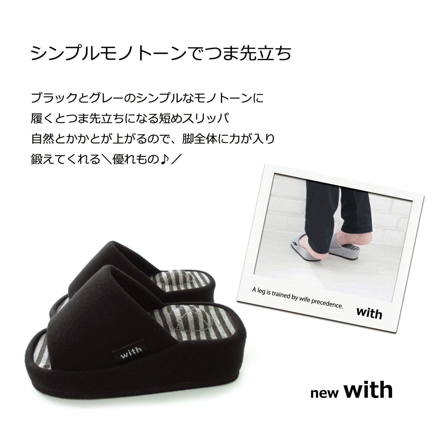 **\新登場!/ [オクムラ] スリッパ With ダイエット ブラック NWAA7904BK|指で掴んでつま先立ち!幅広設計で履きやすさ抜群!**