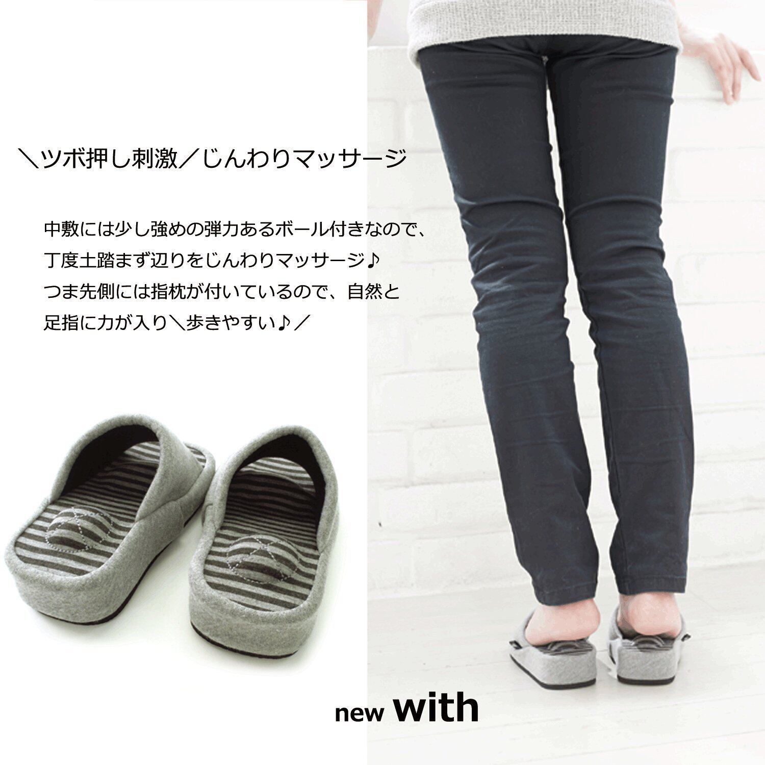 [オクムラ] スリッパ With ダイエット ブラック NWAA7904BK 指で掴んで つま先立ち 幅広 履きやすい