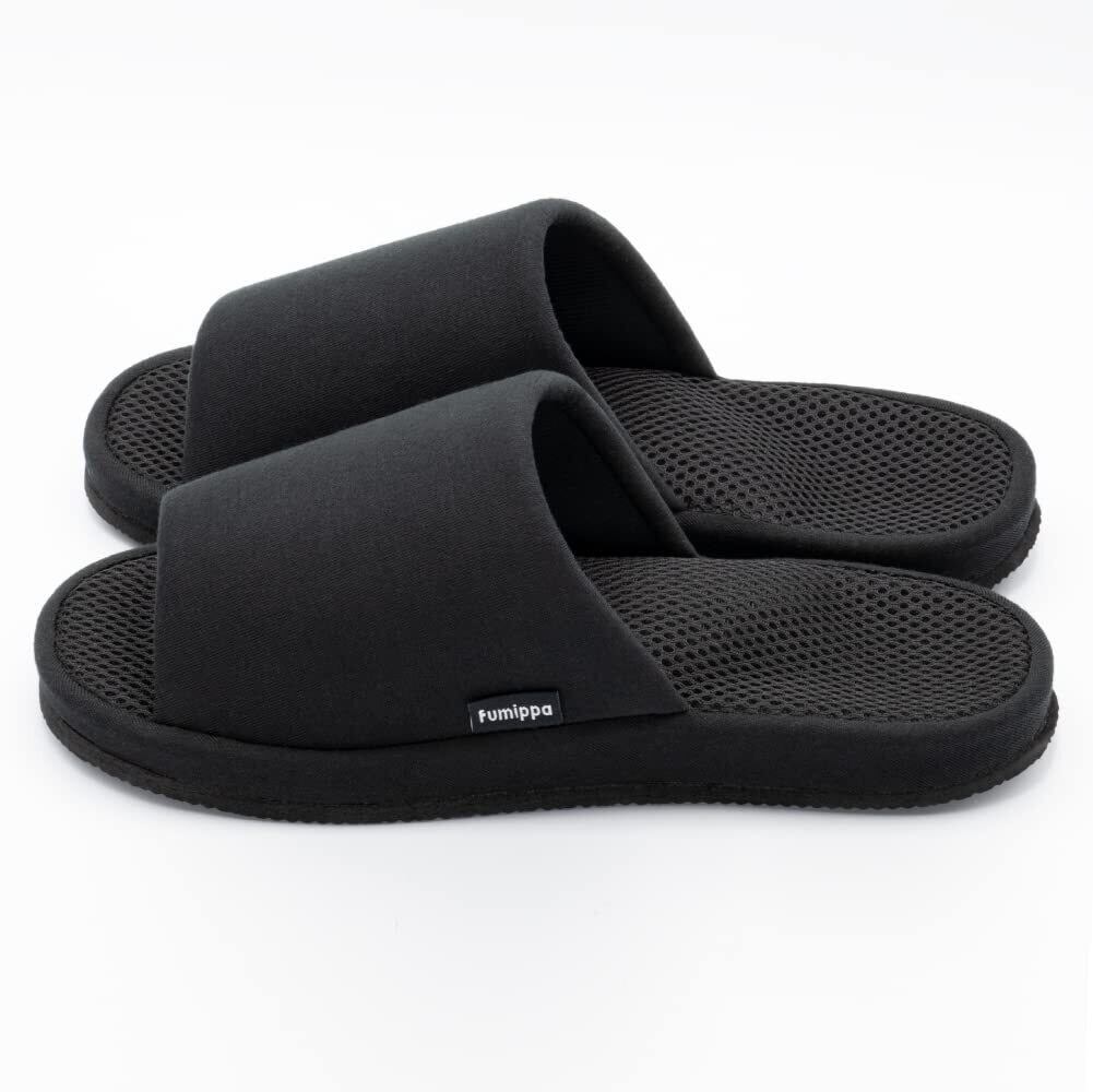 「『アルファックス 健康スリッパ 足つぼ メガ押しふみっぱ グイグイタイプ』は、健康志向のあなたにぴったりのスリッパです。足つぼをしっかり刺激するメガ押し設計により、疲れた足をしっかりケアします。ブラックのシンプルなデザインは、どんなインテリアにも合わせやすく、快適さと健康を両立させる一足です!」