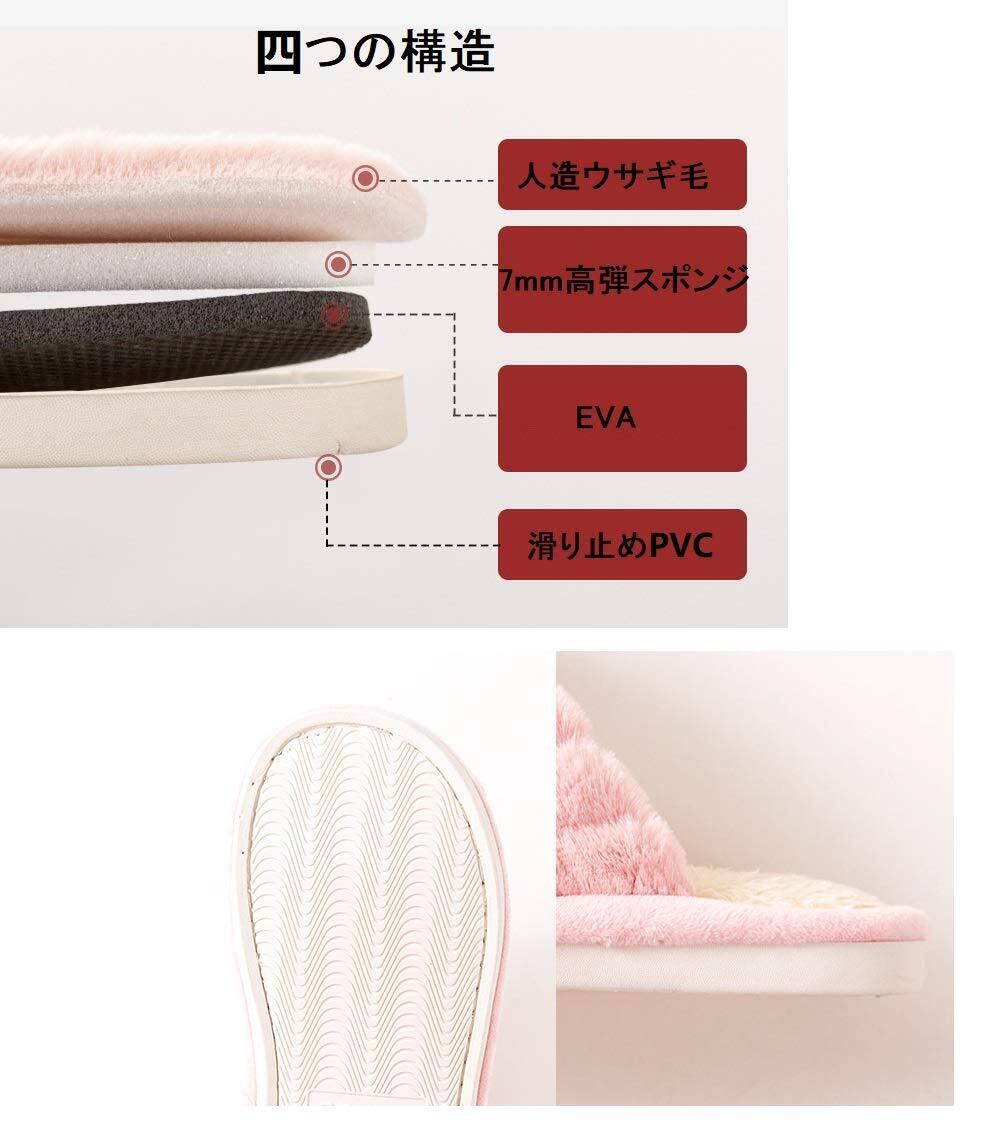 ❥❥❥【 材質】:人造ウサギ毛、生地が柔らかくて肌触りがとても良いです、ふわふわモコモコの暖かスリッパです、可愛い、美脚 ~