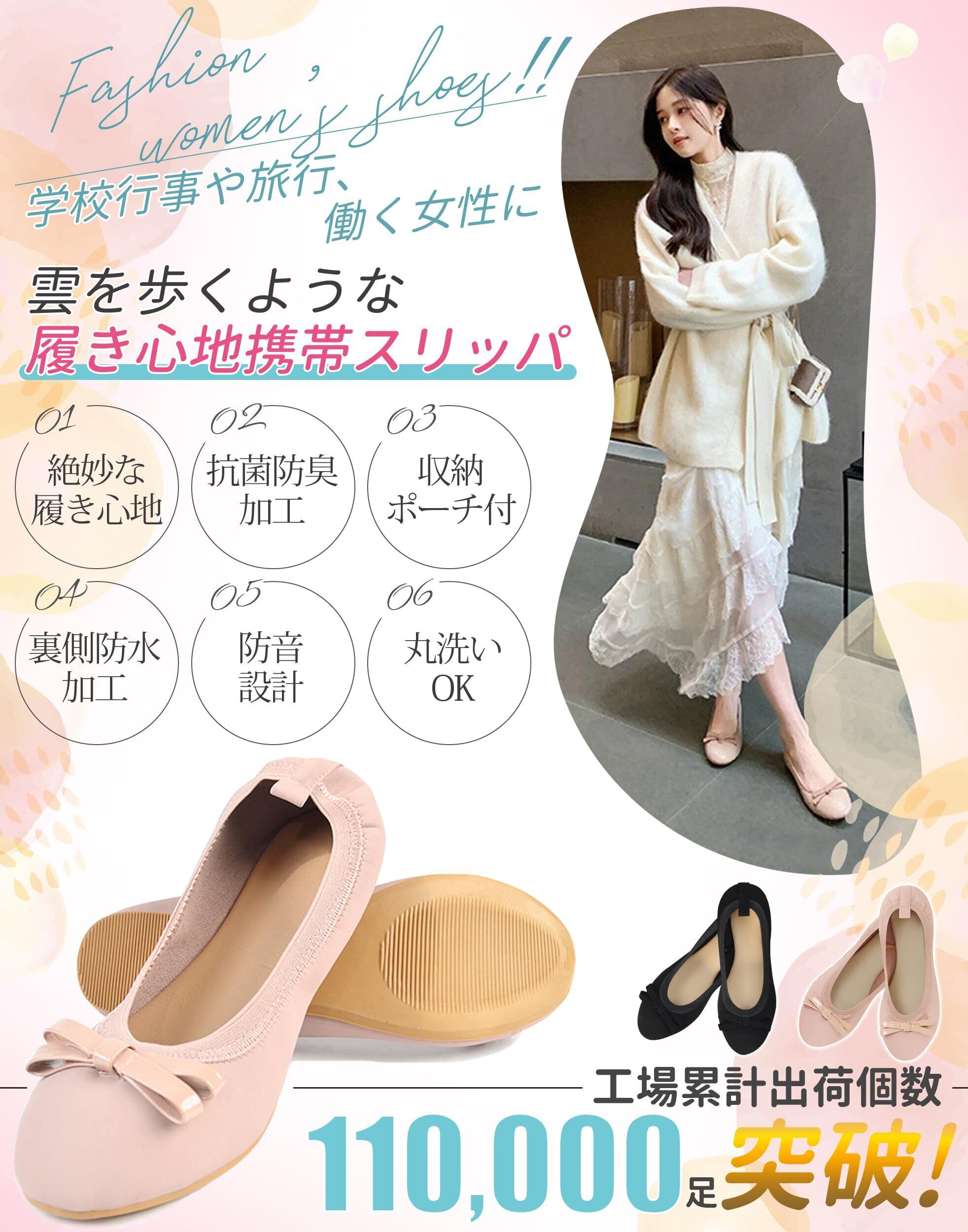[Andeor] 携帯スリッパ レディース 【雲を歩くような履き心地・抗菌防臭防水加工・収納ポーチ付 】 スリッパ 折りたたみスリッパ 携帯シューズ 室内履きシューズ 超軽量 滑り止め 防音設計 丸洗いOK 卒業式 入学式 学校行事 参観日 出張 旅行