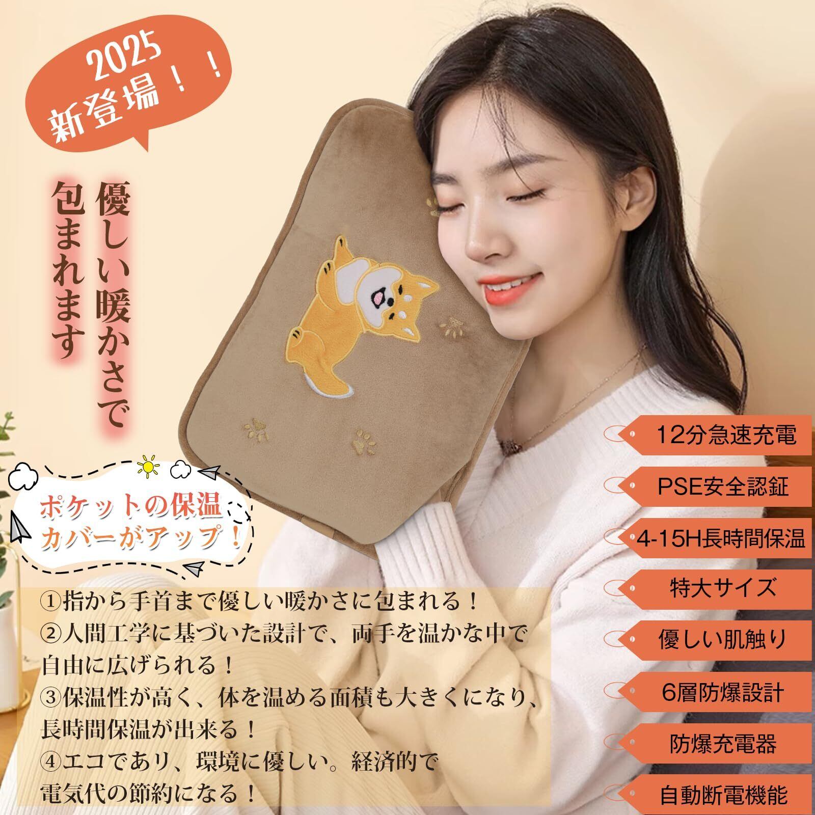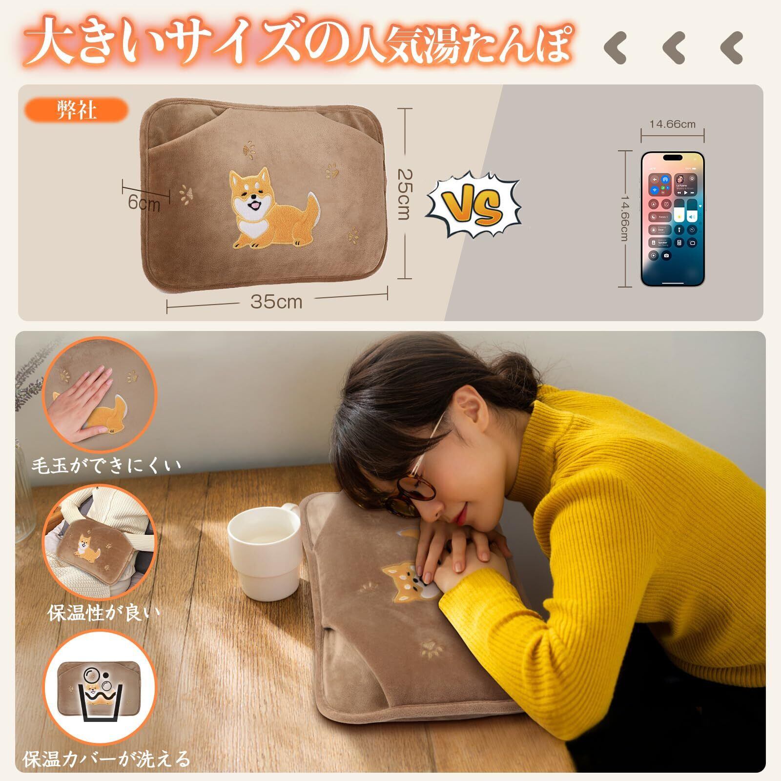 【進化版・特大サイズ湯たんぽ・長時間保温】➊BeeToolの2025年進化版湯たんぽは、ポケットの保温カバーがアップ!➋サイズ(約縦37cm×横25cm)が大きく、保温性が高く、体を温める面積も大きくになり、長時間保温が出来る!❸急速充電、充電すると約10秒で感熱できるし、わずか12分で蓄熱が完了して、最長15時間(布団の中に入れた状態)あったかいんです。寝る30分ほど前に、布団の真ん中に入れて、腰も足元もぬくぬくで、体全体がホカホカです。可愛い柴犬ちゃんデザインも大人気! 今年の冬は、BeeToolの湯たんぽで、まさに夢見心地の快適さを実感してください。