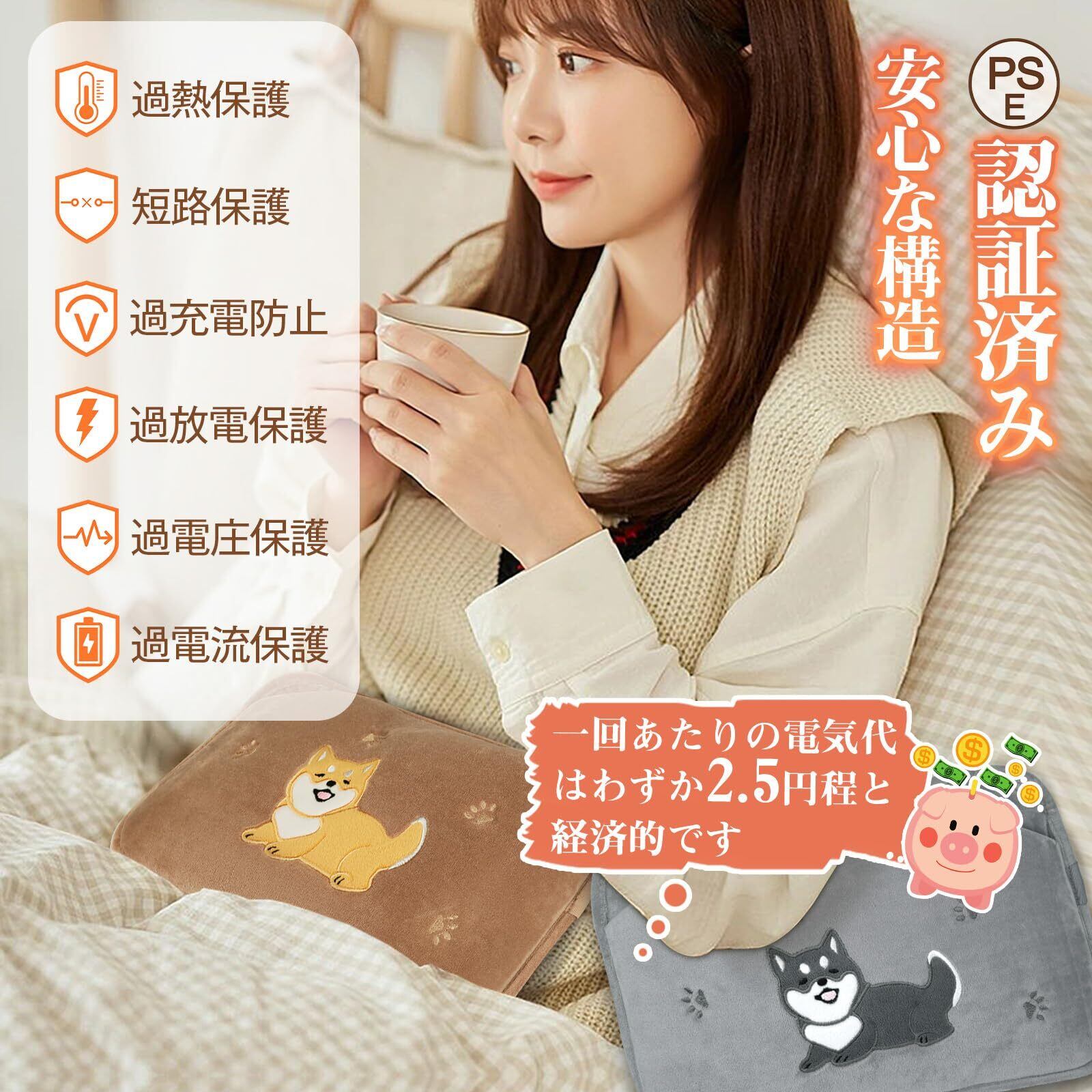 商品特長 ・PSE認証済み・特大サイズ・12分急速蓄熱・4-15H長時間保温・6層防爆設計・自動断電機能・優しい肌触り・防爆充電器