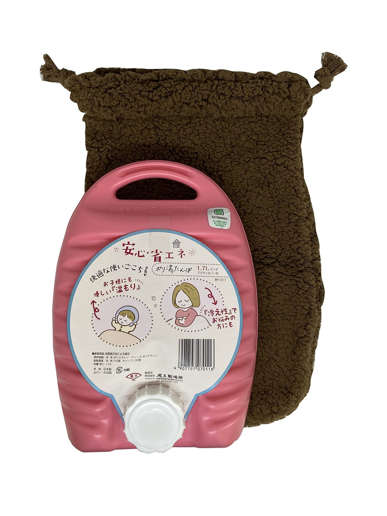 尾上製作所(ONOE) ポリ湯たんぽ 0.6~2.4リットル カバー付 日本製 注水式