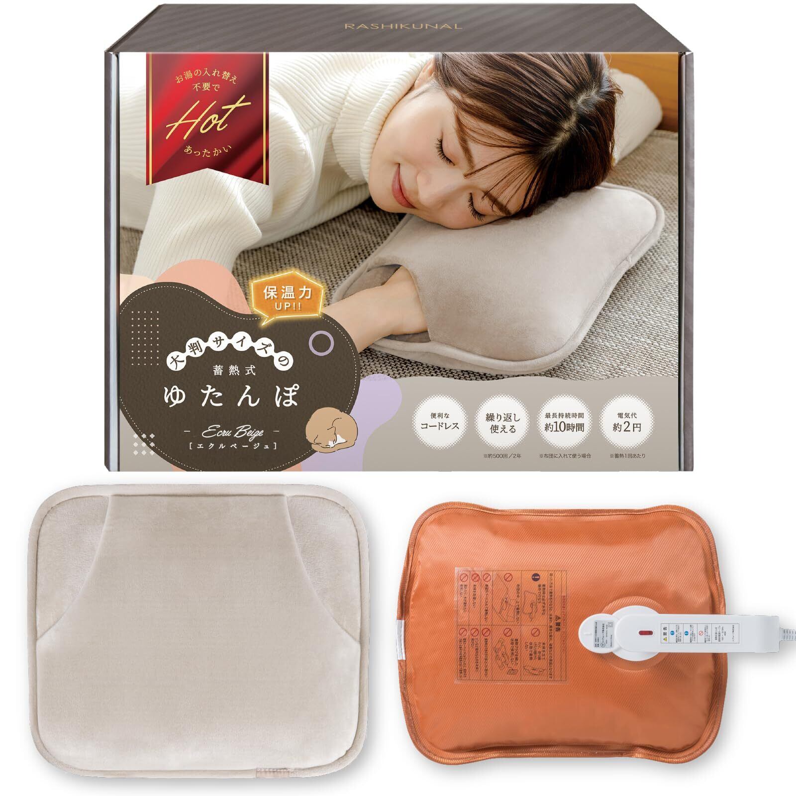 湯たんぽ 湯タンポ 充電式 【大きいサイズx保温ポケット型x蓄電式x急速充電xエコ湯たんぽx長時間保温x可愛いx省エネxギフトxプレゼントxPSE認証済み】(エクルベージュ)