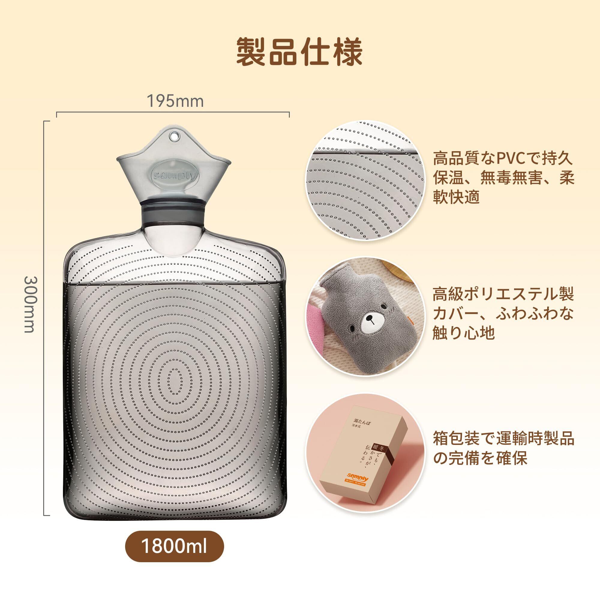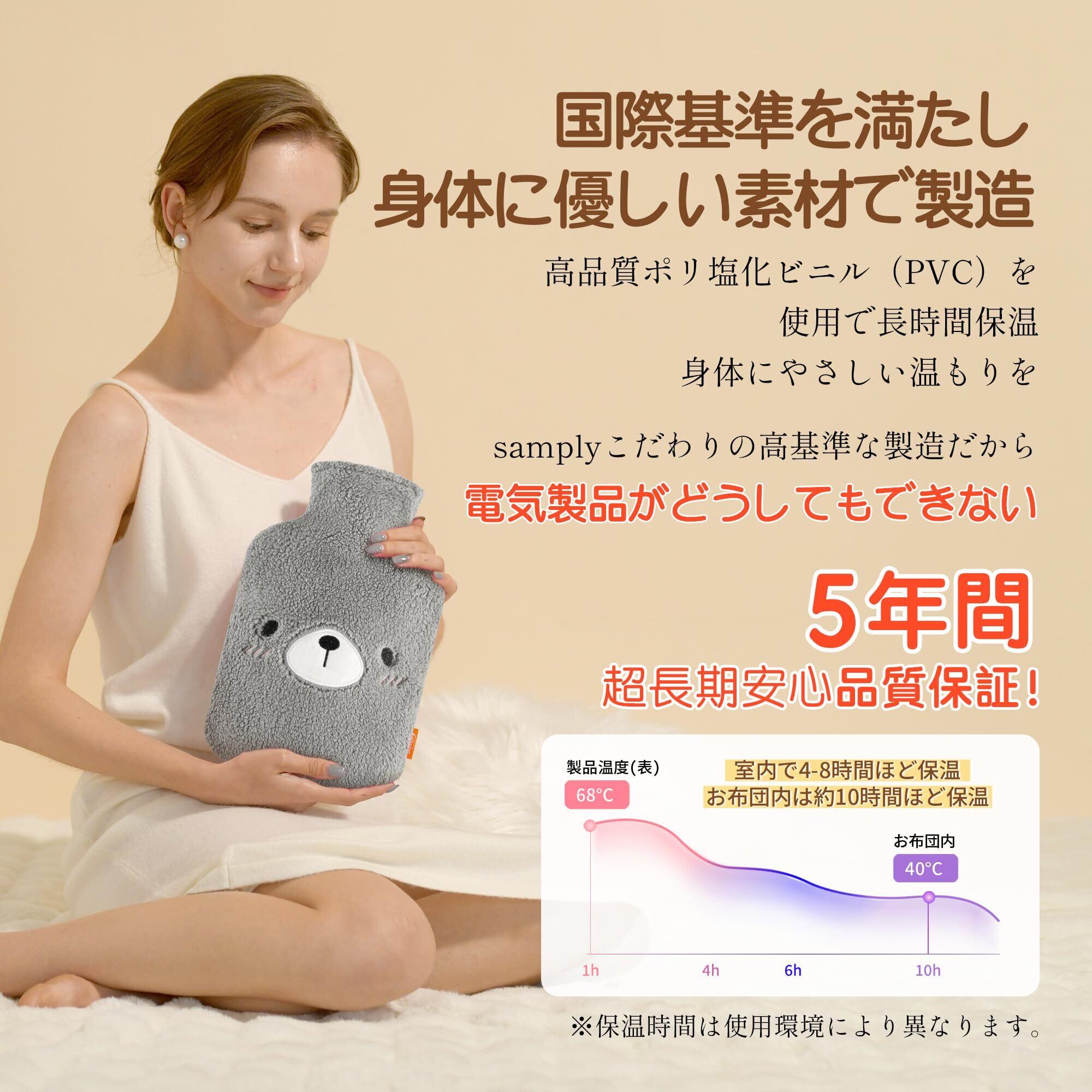 samply 湯たんぽ ゆたんぽ お湯 注水式 容量1.8L かわいい カバー付き エコ 省エネ 防寒グッズ 冷え対策 ギフト(クマ グレー 1.8L)