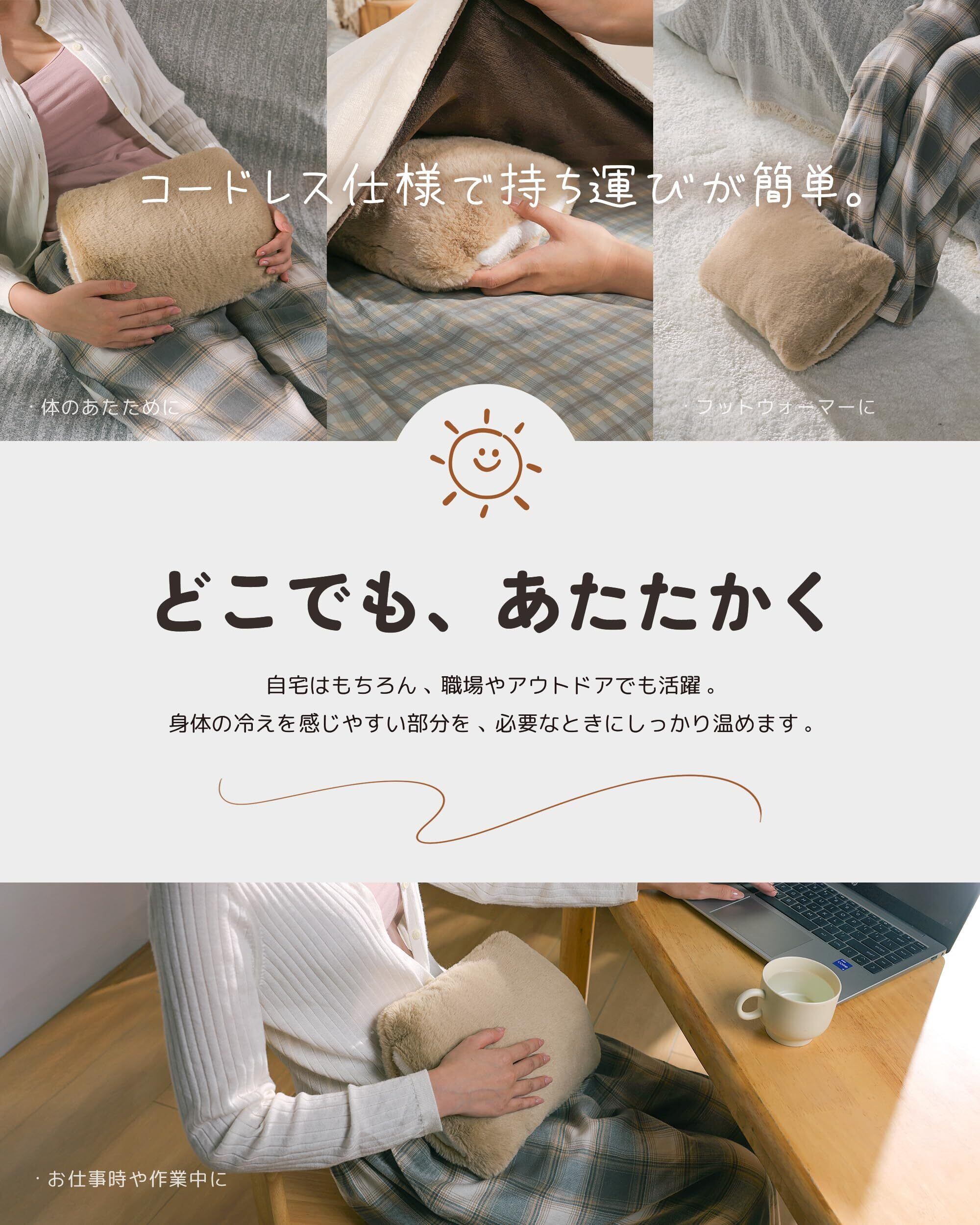 「家庭での使用はもちろん、オフィスや旅行でも便利です。寒がりな方へのプレゼントにも喜ばれるデザインで、温かさと思いやりを贈りましょう。」