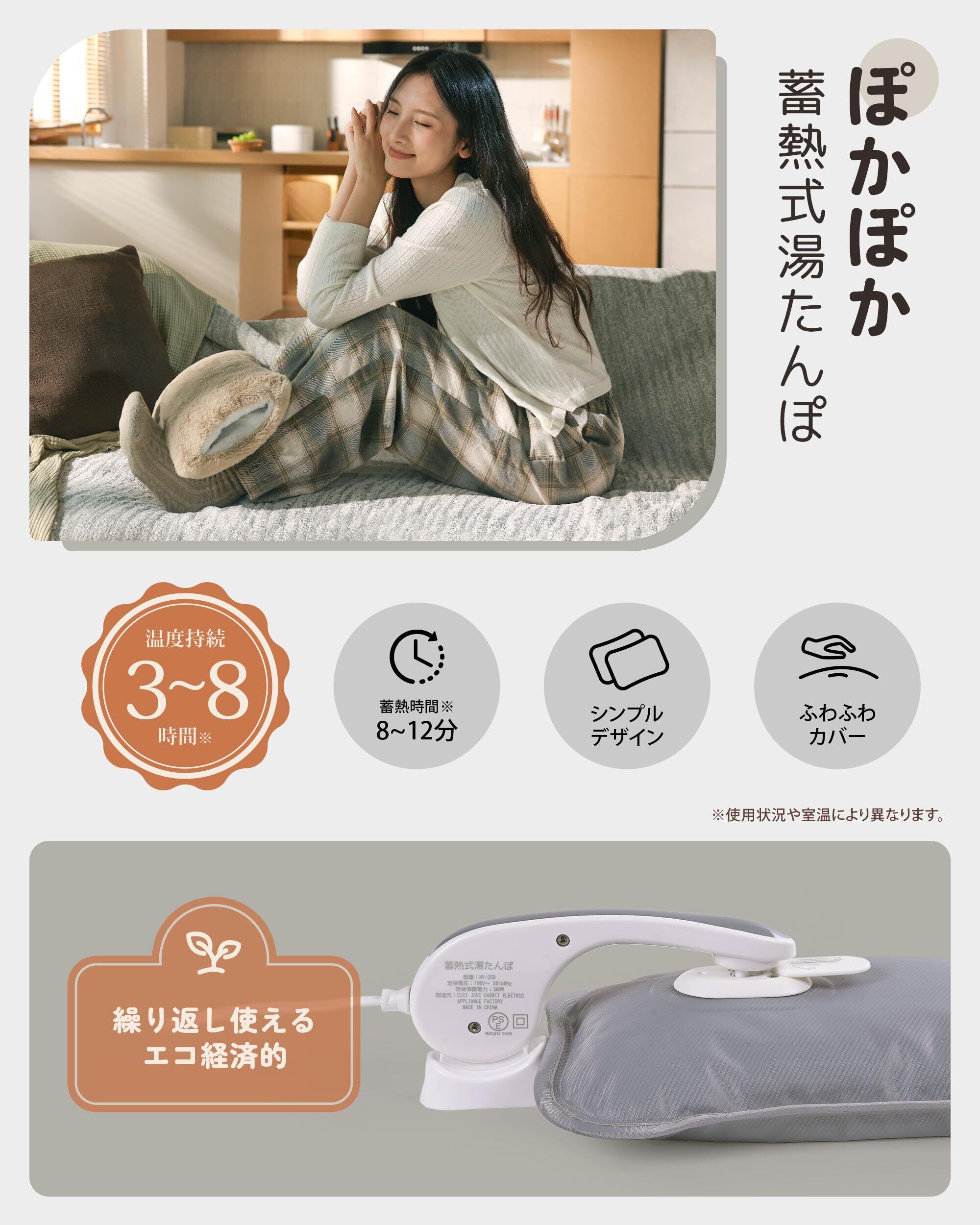 「お湯を注ぐ必要がなく、簡単に充電した後はどこでも使用可能。リビングでのくつろぎタイムや、寝室でぐっすり眠る時に、ポカポカ感をしっかりサポートします。省エネ設計で、環境に優しいのも嬉しいポイントです!」