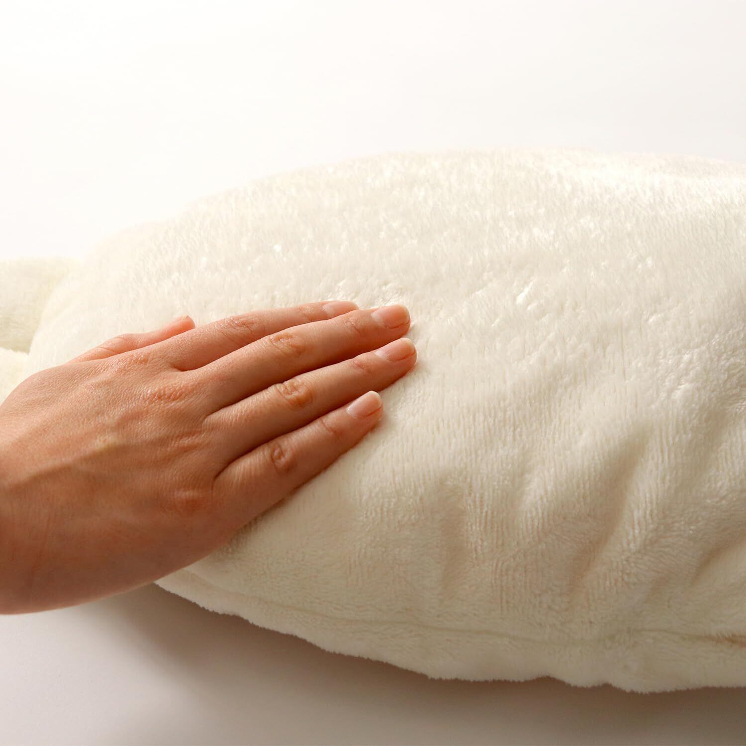 【Point2】 カバーにはそれぞれ、かわいいしっぽと耳がついています。 ふわふわで柔らかい、なでごこち。 手洗いOK!