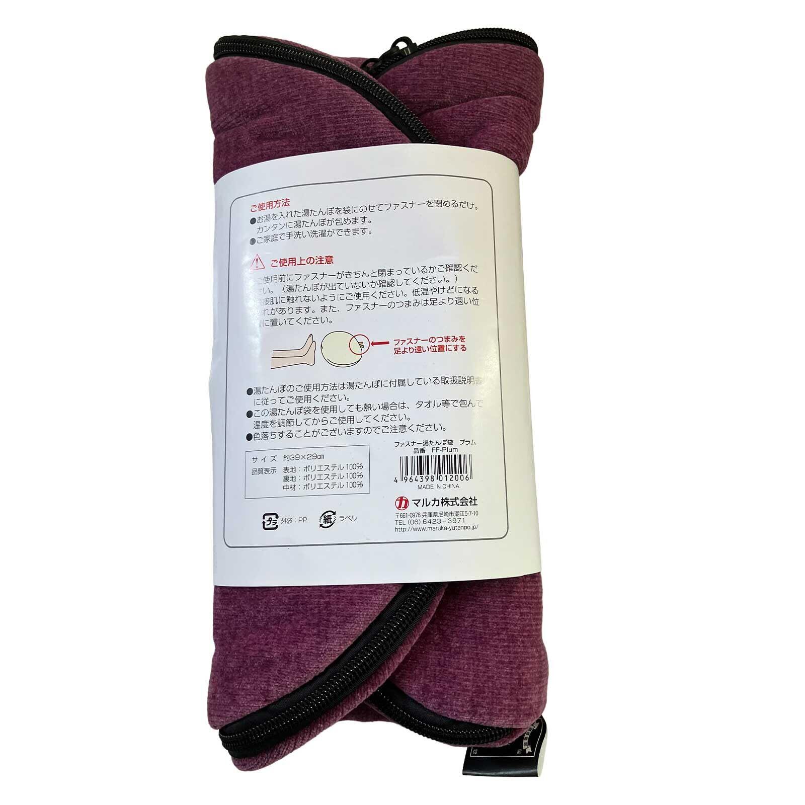 マルカ(Maruka) ファスナー 湯たんぽ 袋 プラム 39×29×2.5㎝ 湯たんぽ1.8L~3.5Lに対応 カバー 洗える 保温 かわいい おしゃれ 大 キャンプ アウトドア 厚手 FF-Plum