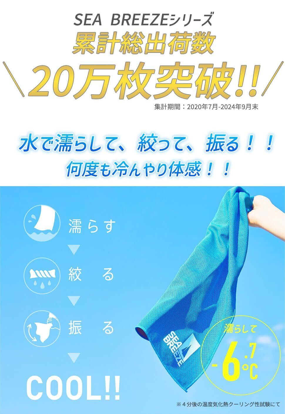 - ご使用に際しては、取り扱い説明書をよくお読みいただき、安全にご使用ください。この『[シーブreeze] SEABREEZE クールタオル 冷却タオル』が、あなたの暑い夏を快適にするお手伝いをいたします!