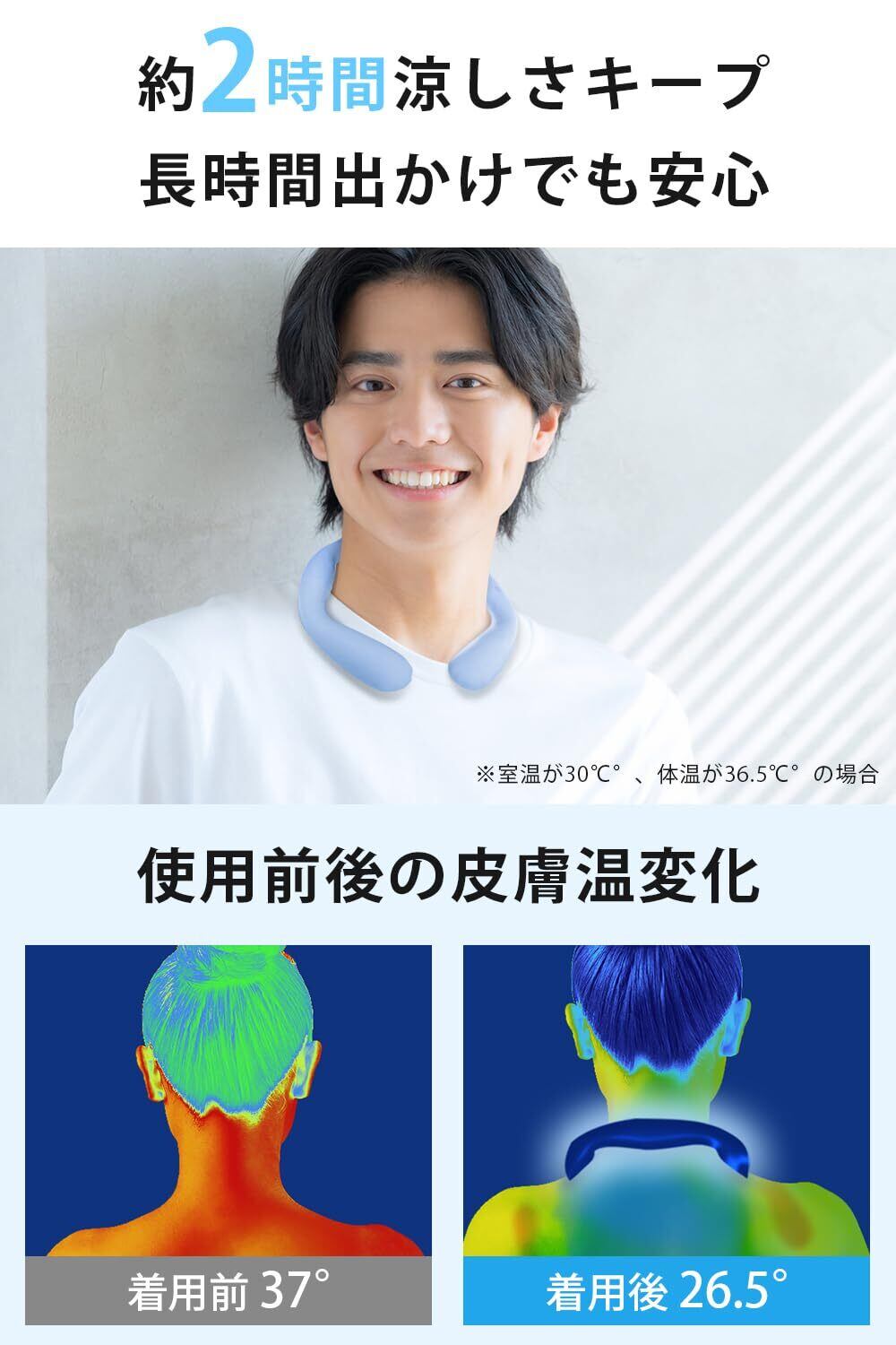 「2025年新設計のペンタゴン仕様で、冷却効果が向上しました。首にフィットし、長時間の使用でも快適さをキープ。外出やスポーツ中でも安心してご使用いただけます。」