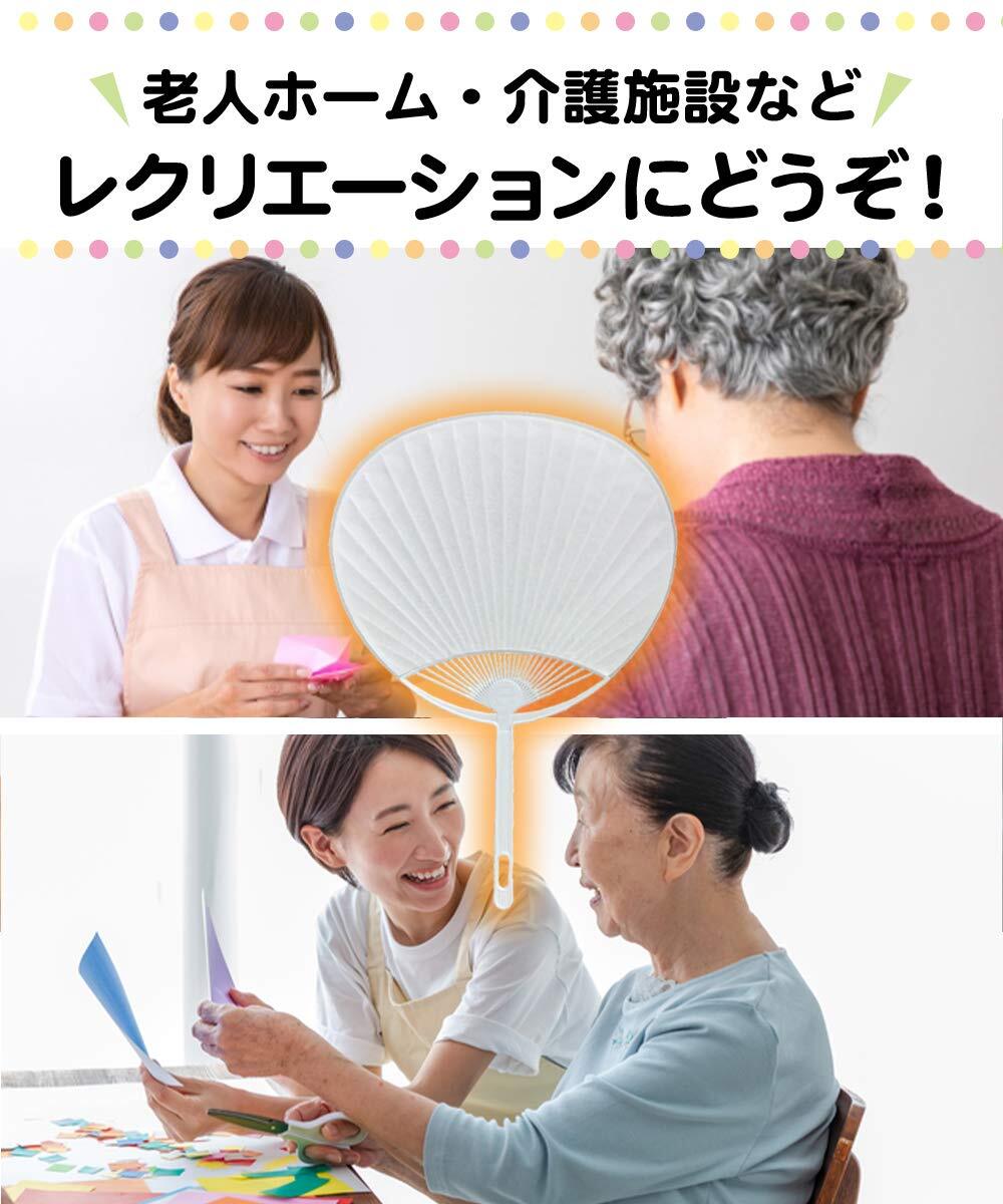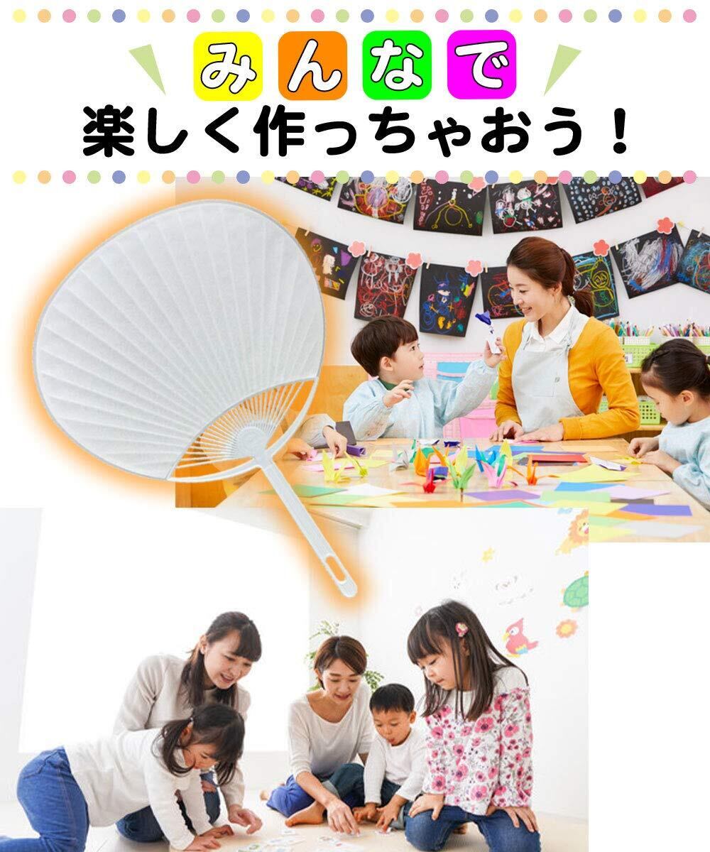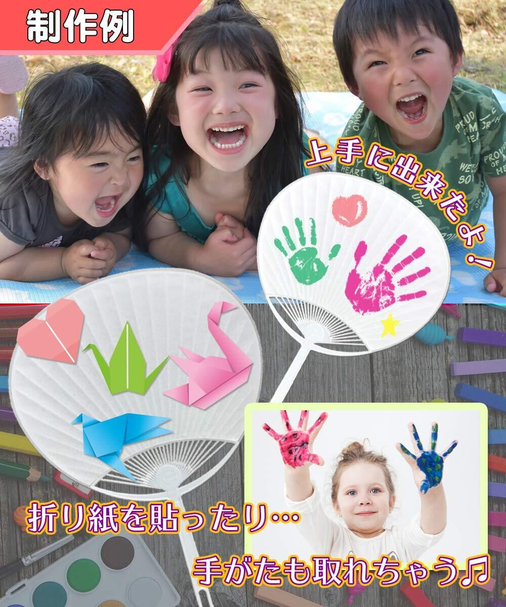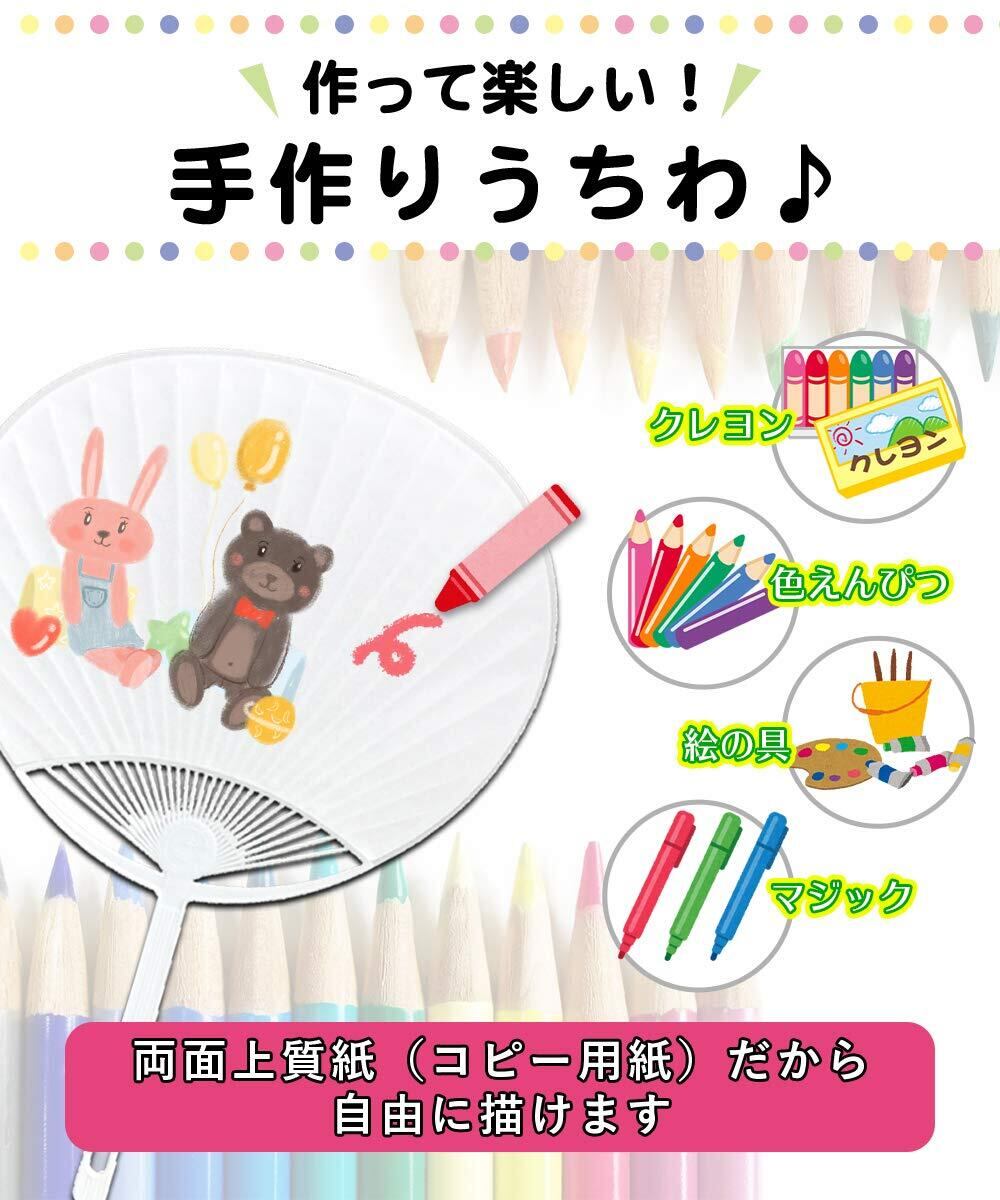 「このうちわの特色は、白無地の表面に自分の好きなデザインを描けることです。マーカーや色鉛筆を使って、キャラクターやメッセージ、アート作品を表現でき、家族や友人と共に楽しむことができます。特にお子様の創造力を育むのにぴったりです!」