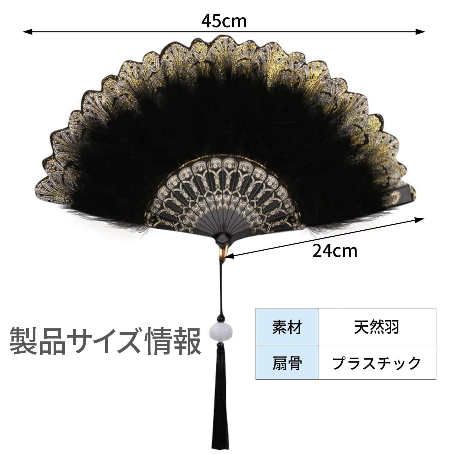 ジュリ扇 コスプレ小物 コスプレジュリ扇子 レース フェザー ダンス フェザー ファンシードレス ふわふわ 仮装大会 パーティー 仮面舞踏会 新年会 お祭り 学園祭 文化祭 (ファイン・ブラック)