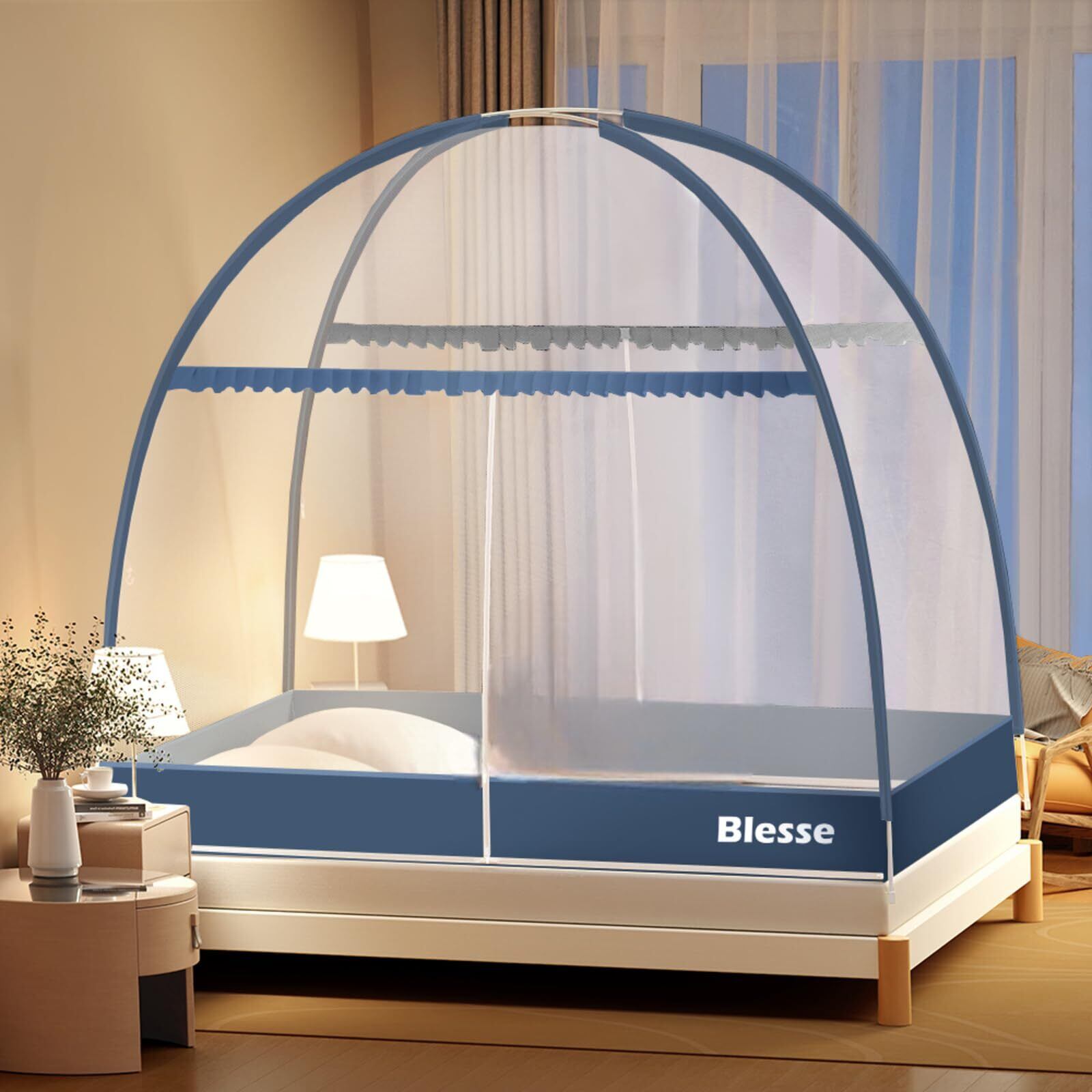 蚊帳 テント ワンタッチ 【2025改良型・折りたたみ・底生地付き】 かや モスキートネット ベッドテント 虫よけ 蚊よけ ムカデ対策 組み立て簡単 収納便利 通気性 高密度 夏用 (ネイビーブルー, 150*200*155cm)