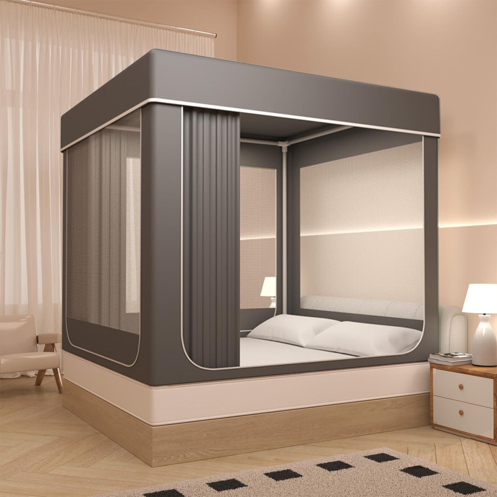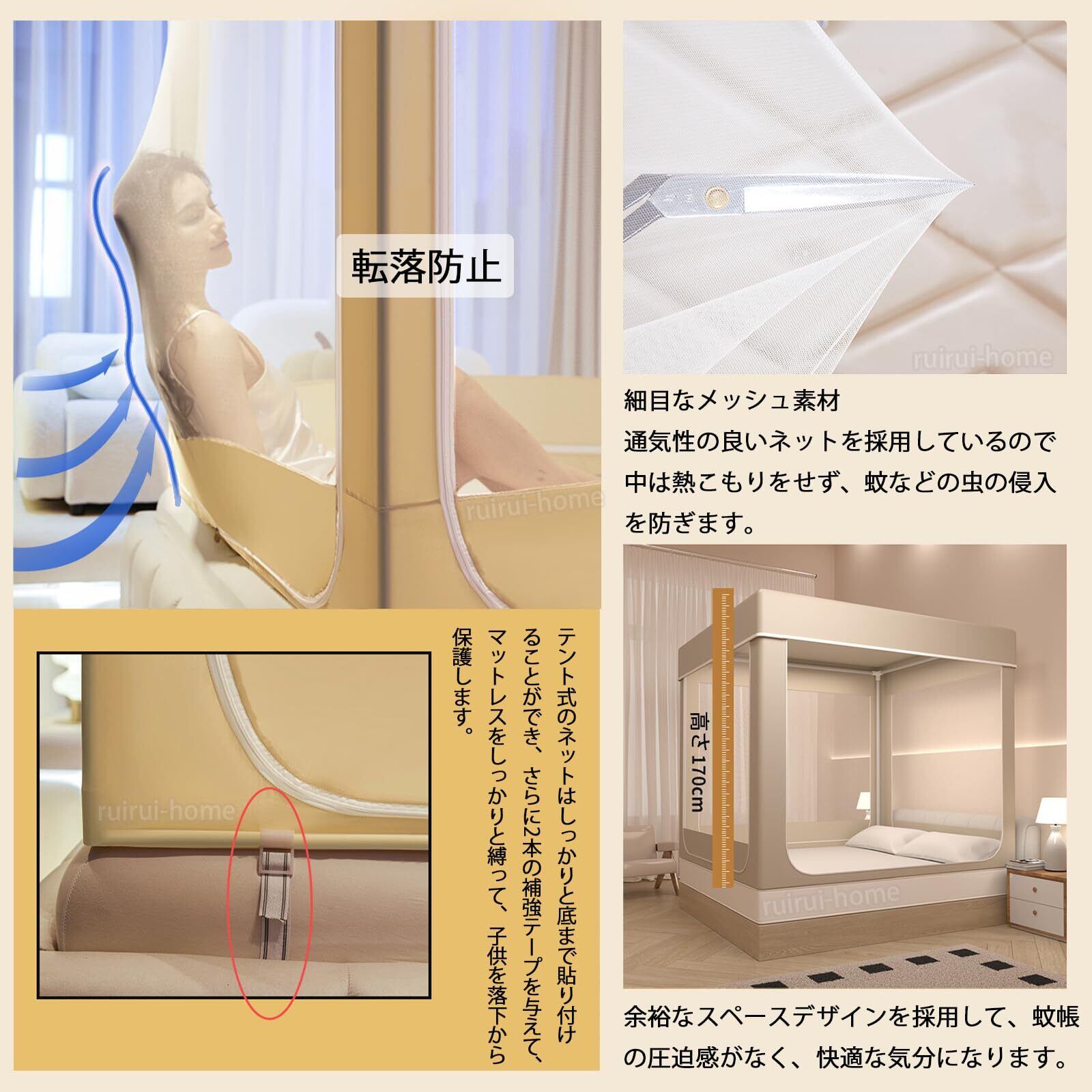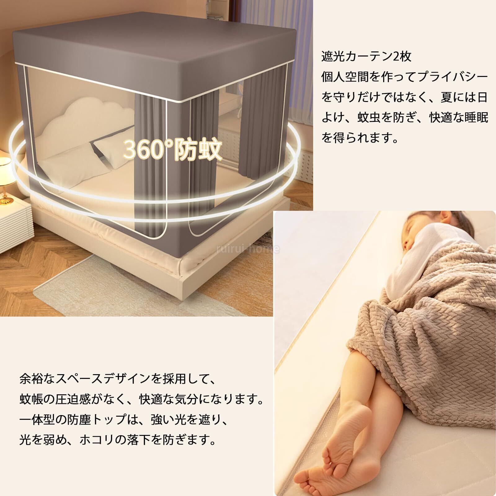 【大空間、防塵カバー】余裕なスペースデザインを採用して、蚊帳の圧迫感がなく、快適な気分になります。一体型の防尘トップは、強い光を遮り、光を弱め、ホコリの落下を防ぎます。