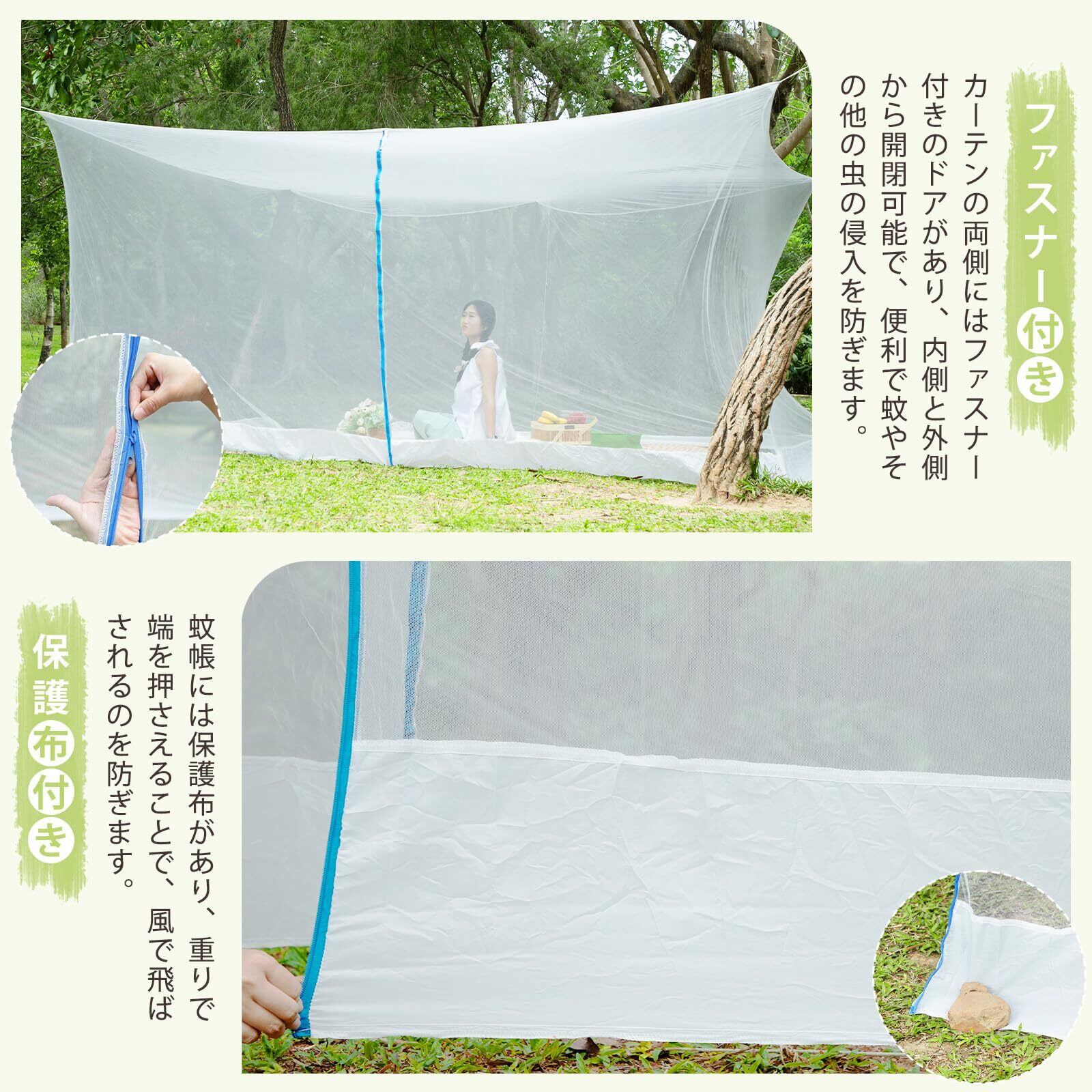 【防虫 防蚊対策】この蚊帳は約1mmのメッシュ生地でできており、通気性がよく、薄いメッシュが蚊や蛾、蜂などの害虫を寄せ付けず、虫から身を守り、屋外での活動のときに快適に感じられることができます。