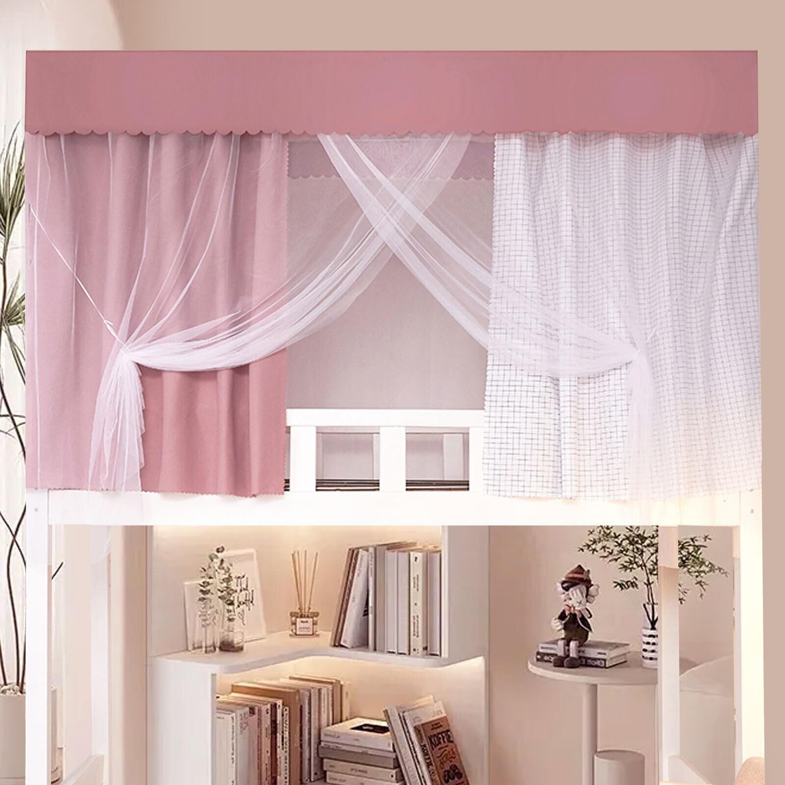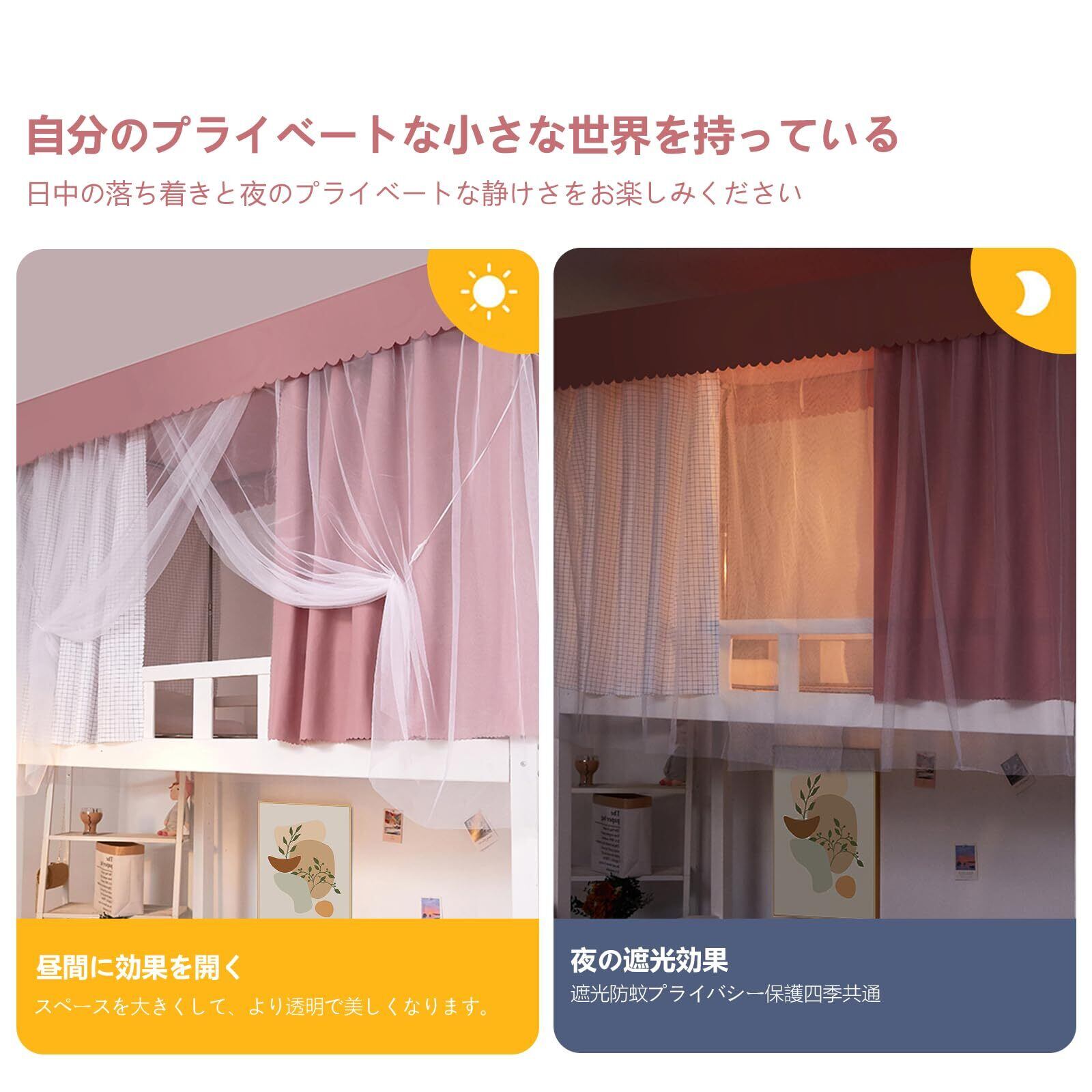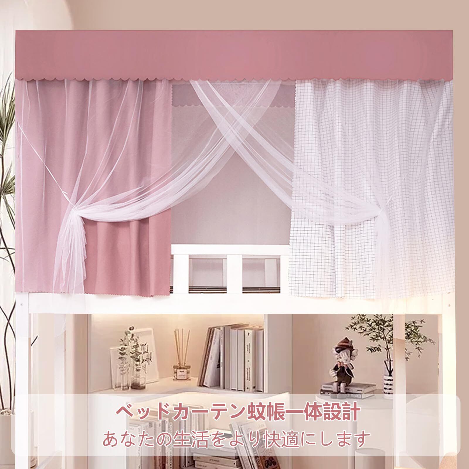 蚊帳 学生寮 上段と下段蚊帳 シングルベッド 室内カーテン ベッドテント プライバシーテント 取り付けが便利 遮光 通気性 防虫 防蚊 防塵 多機能取り付けが便利 (下段ベッド(長さ190 幅90 高さ90),桜色)
