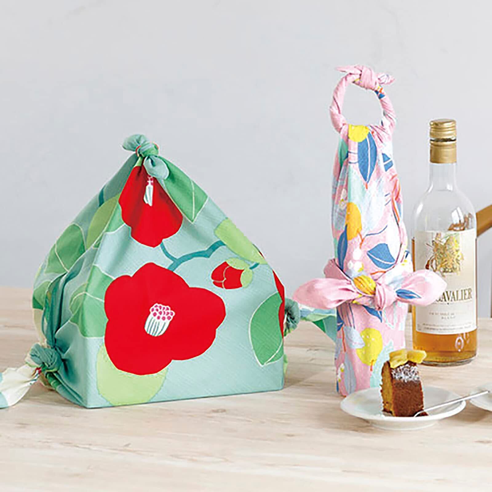 「風呂敷は物を包むだけではなく、エコバッグやインテリアアイテム、テーブルクロスとしても非常に便利です。この美しいつばきデザインの風呂敷があれば、日常のあらゆる場面でおしゃれに活躍し、特別な贈り物としても最適です。」