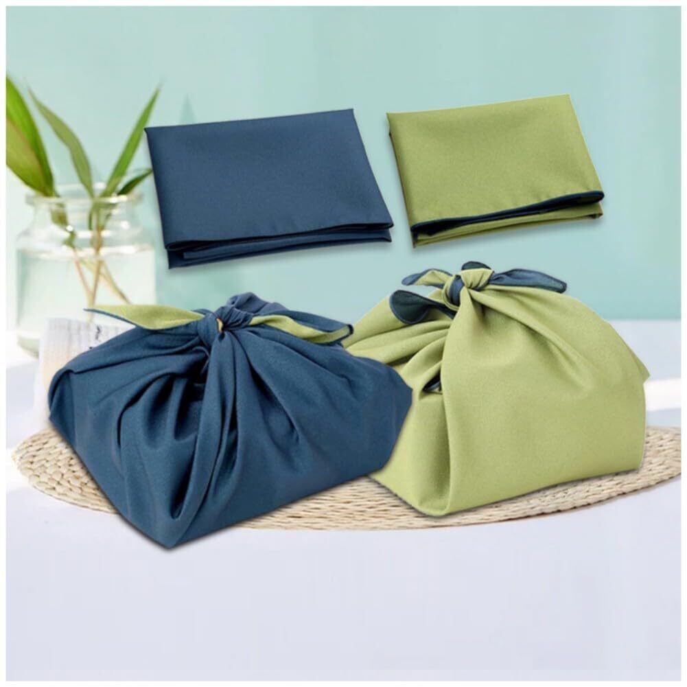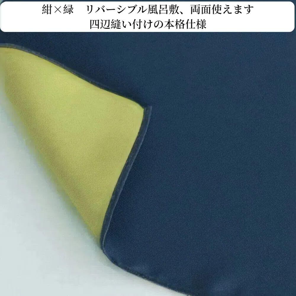 風呂敷 リバーシブル おしゃれ 大判 ふろしき 無地 90センチ ちりめん 両面染め 四方縫製 二巾 お弁当包み ラッピング ギフト包み 瓶包み 着物お稽古バッグ 目隠し クロス エコバッグ (紺・緑, 90×90cm)