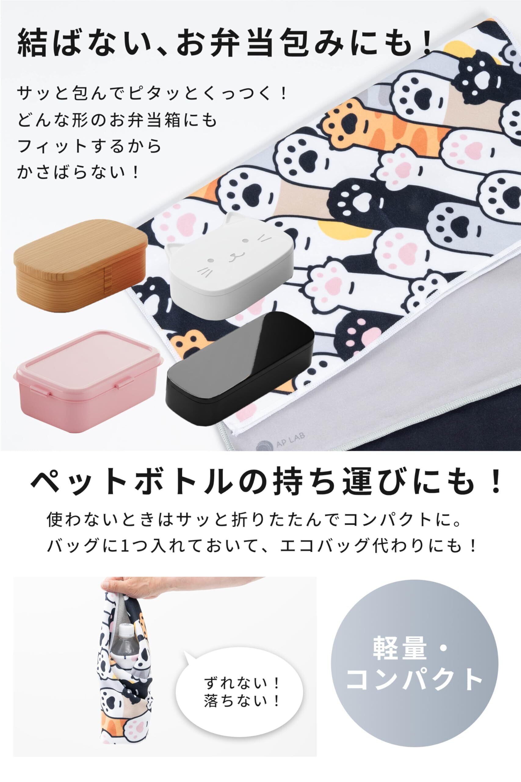 【お弁当包みやボトルホルダーにも】 お弁当箱やペットボトルにフィットし、形を選ばずぱぱっと包めます。忙しい朝も時短に!そのまま持ち運べるので、通勤・通学・レジャーにぴったりです。