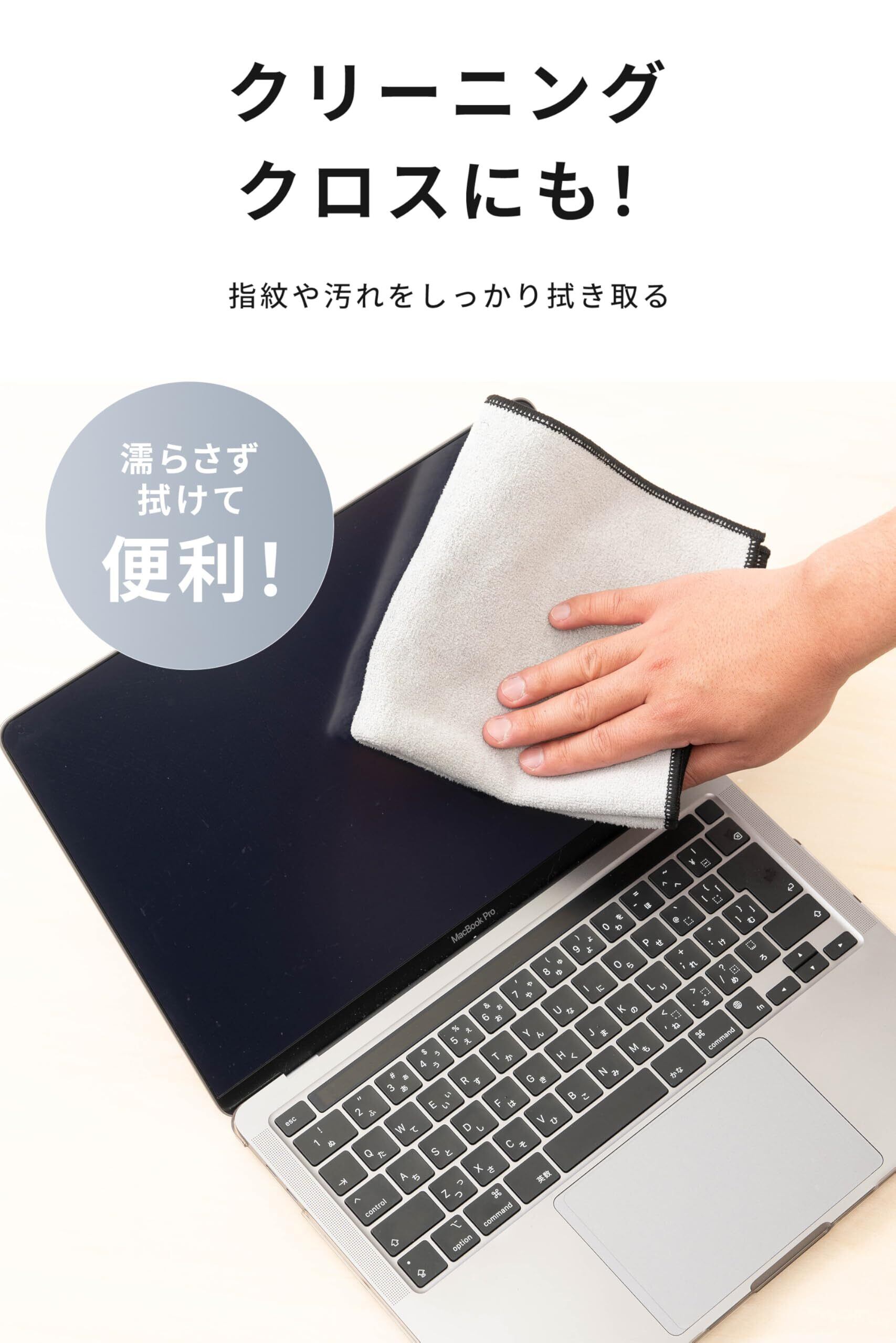 「ピタッと密着する特殊な素材が、カメラやPCをしっかりと保護し、傷や汚れから守ります。さらに、クリーニングクロスとして使用すれば、レンズや画面を清潔に保つことができ、視界をクリアに保つことができます。」
