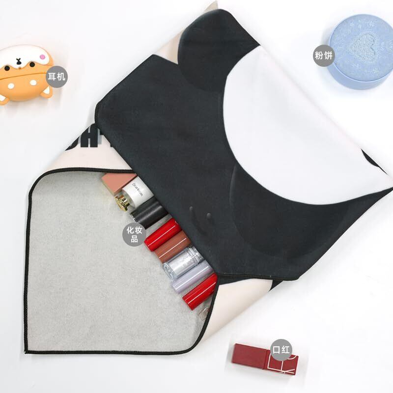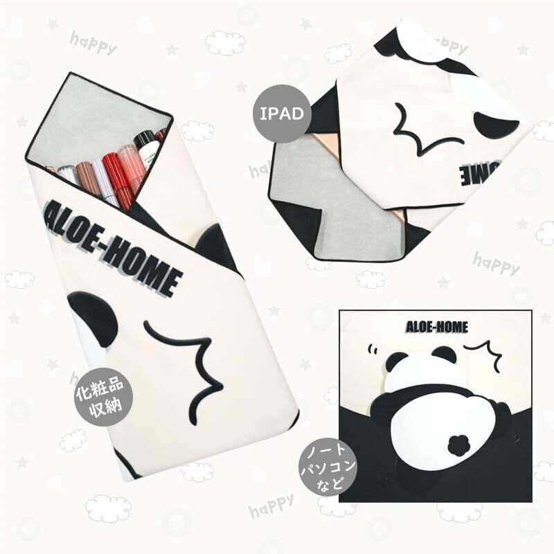 aloe-homeくっつくクロスくつっくタオル 超便利風呂敷 化粧品弁当箱カメラIPADなど包む 吸水 保温 50*50cmカメラ保護 レンズ保護 IPAD保護 化粧品収納 風呂敷 ペタペタ布 マジッククロス (パンダ(黒))