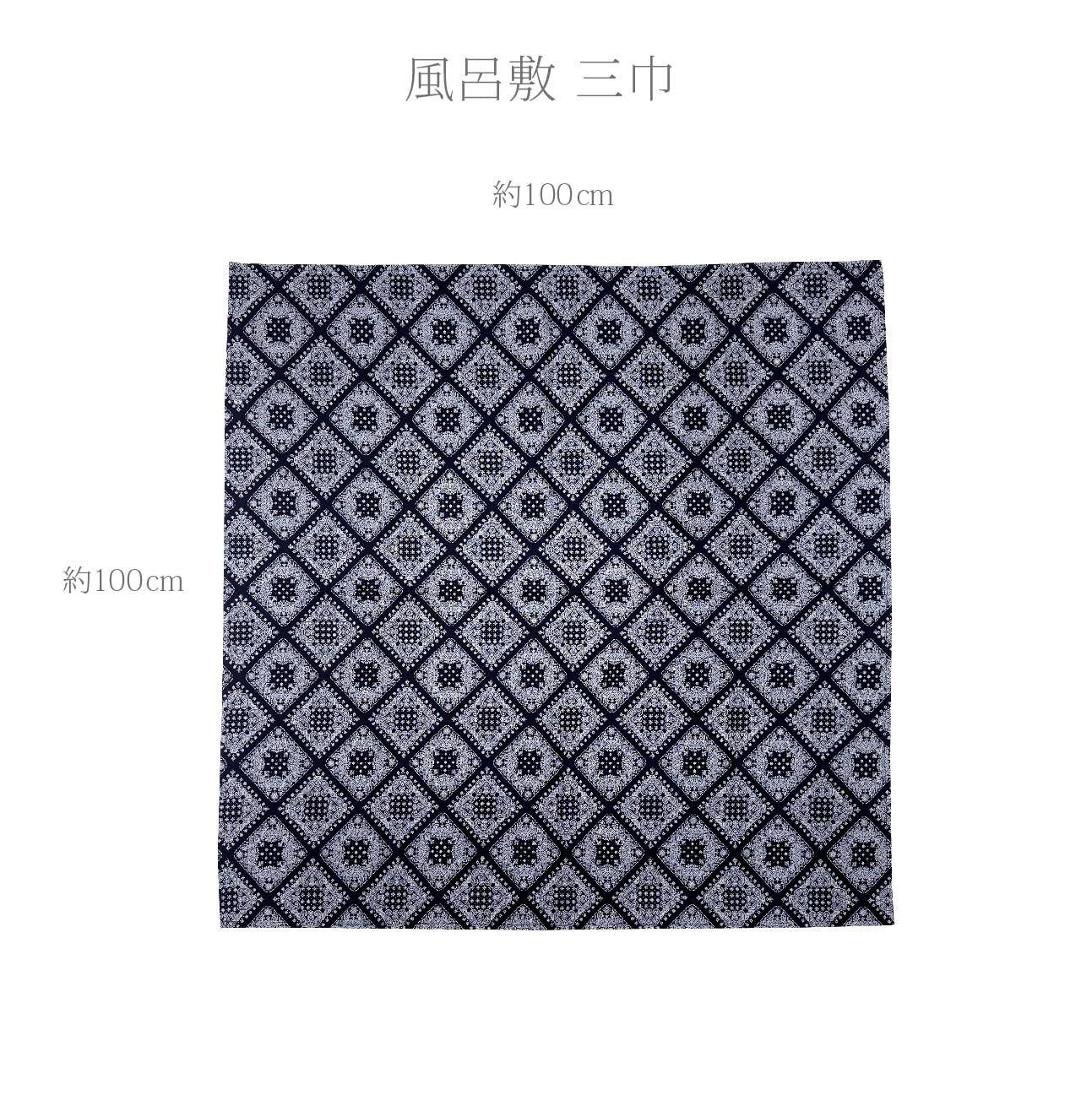 [マシュール] バンダナ柄 風呂敷 100cm ペイズリー 三巾 綿100% 日本製 大判 洋柄 (ネイビー)