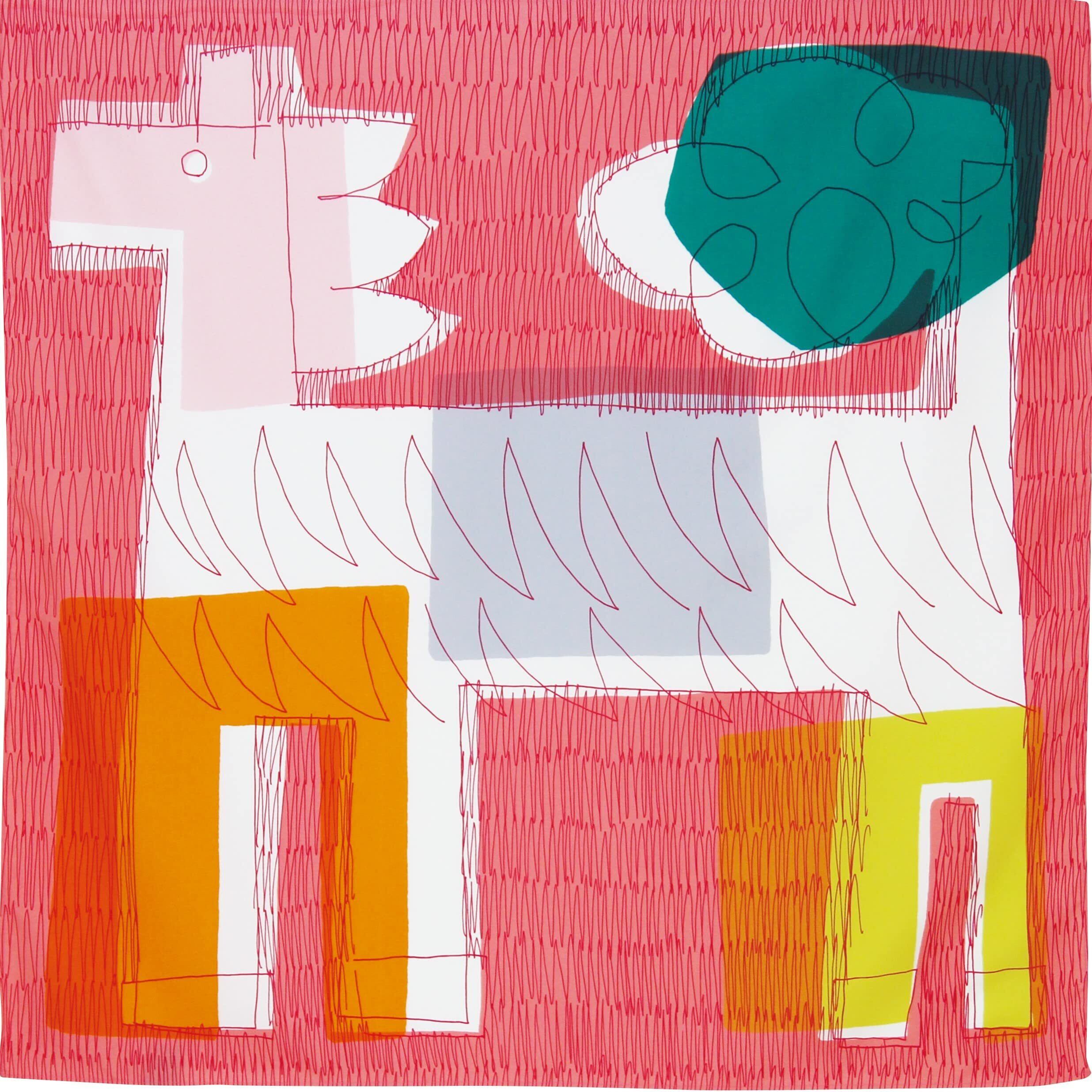 背景からモチーフまで、絶妙な色の重なりを活かして大きなポニーが描かれた風呂敷は、包む方向によって色が異なるようにデザインされている。