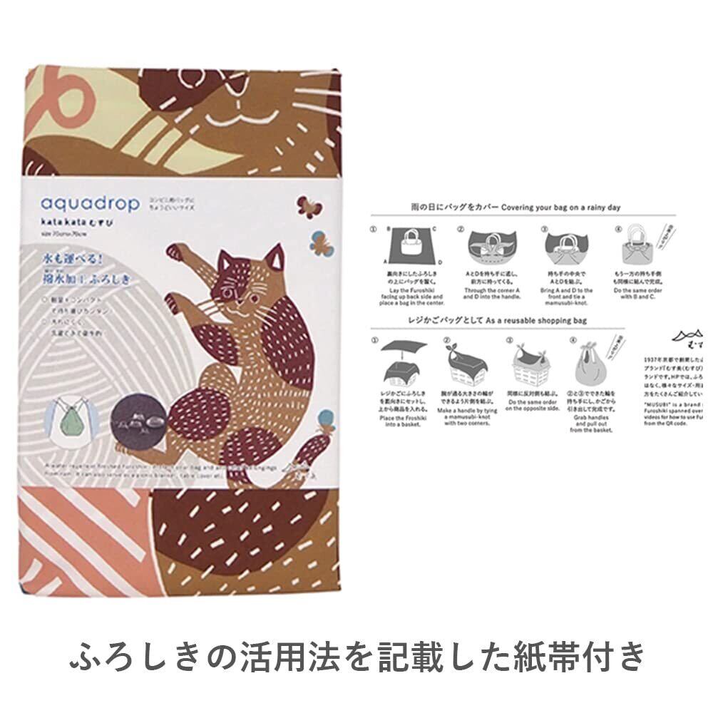 「日本製の高品質なポリエステル素材を使用しており、撥水加工によって水分を弾くので、安心して使うことができます。お手入れも簡単で、長くご愛用いただける風呂敷です。」