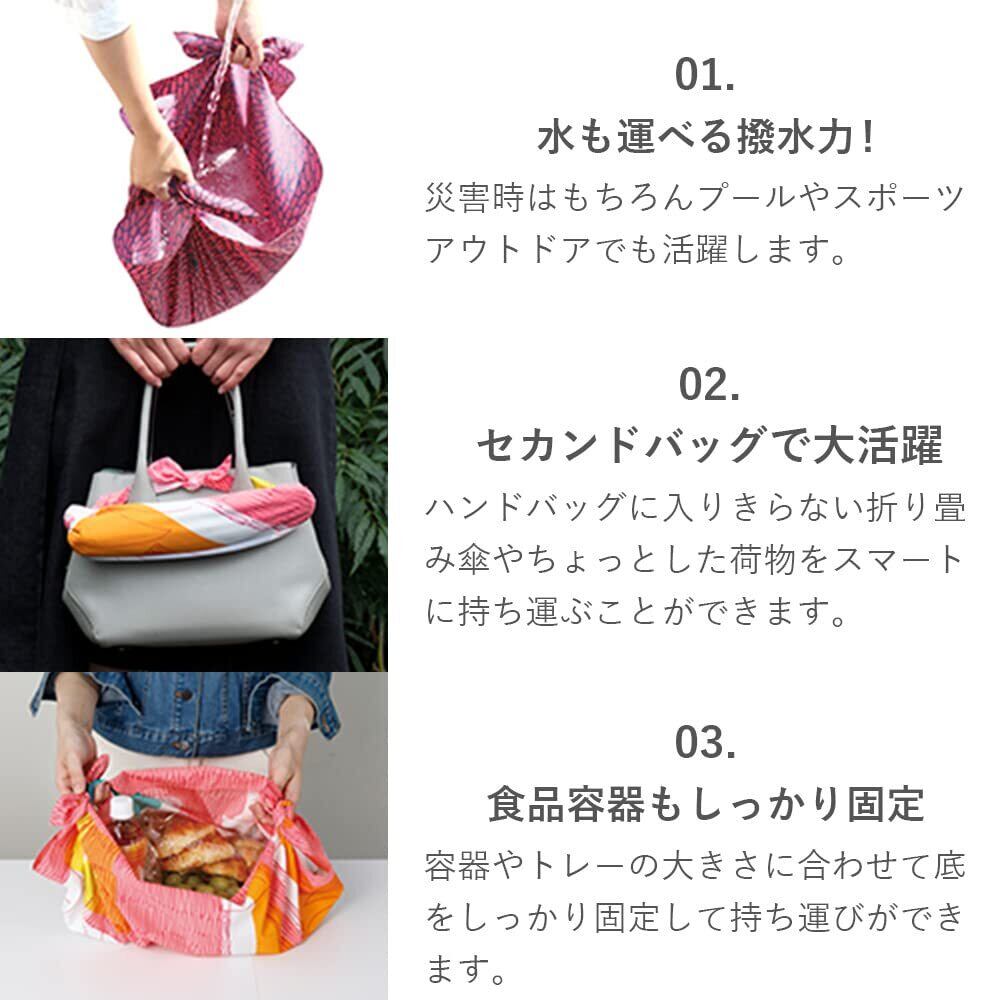 「約70cmのサイズ感は、さまざまな使い方ができ、実用性にも優れています。お弁当包みやエコバッグの代わりとして、大切なアイテムをすっきりとまとめられます。持ち運びにも便利で、急なお出かけにもぴったりです。」