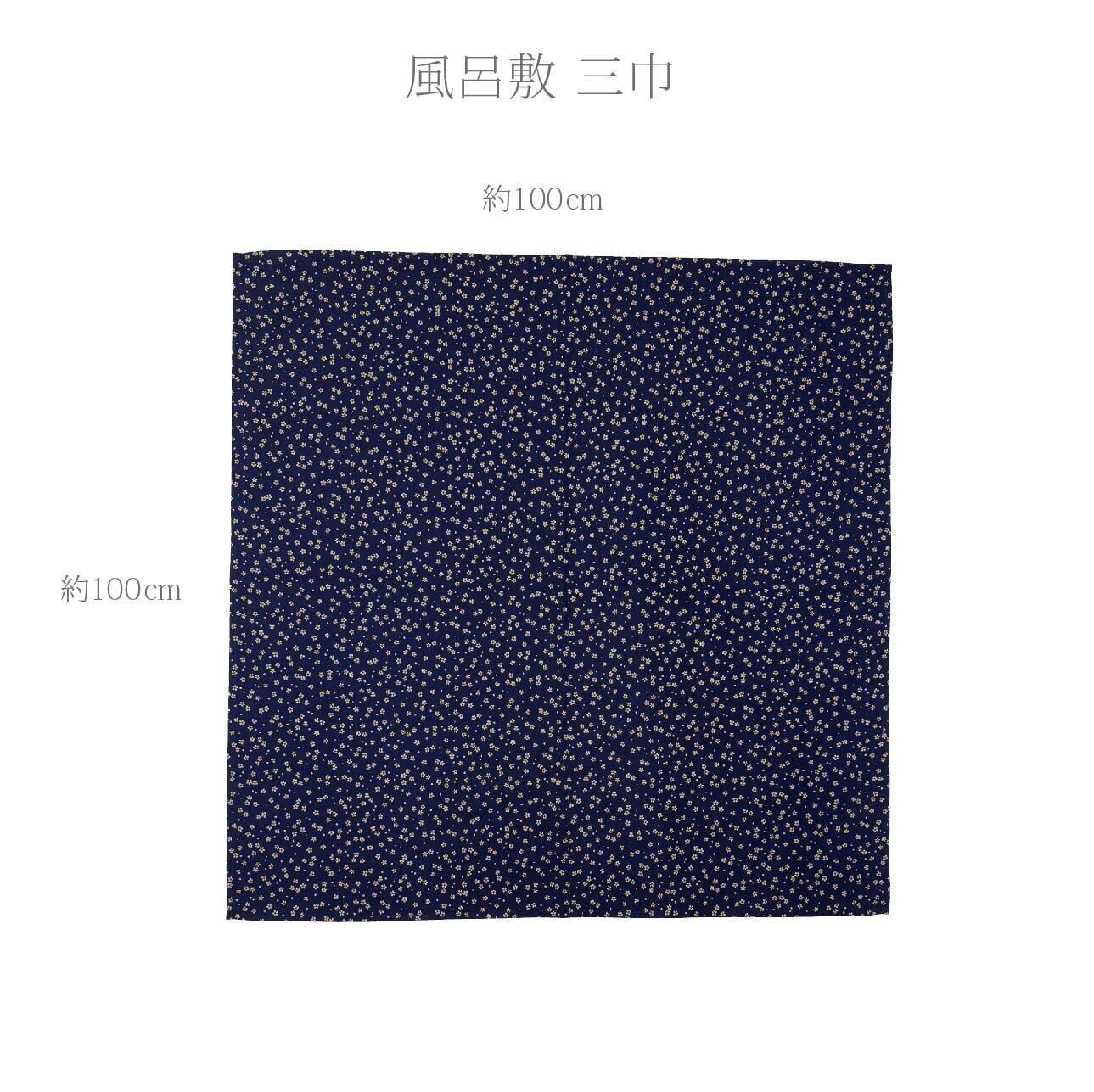 [マシュール] 金桜 風呂敷 100cm 桜柄 金プリント 三巾 綿100% 日本製 大判 和柄 和風 (ネイビー)